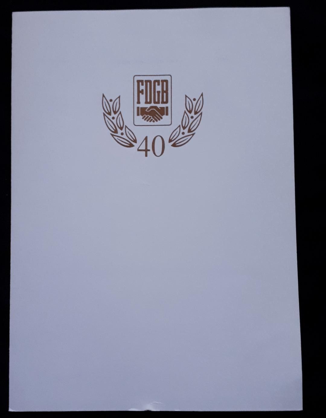 DDR FDGB Ehrenurkunde für 40jährige Mitgliedschaft Dezember 1986