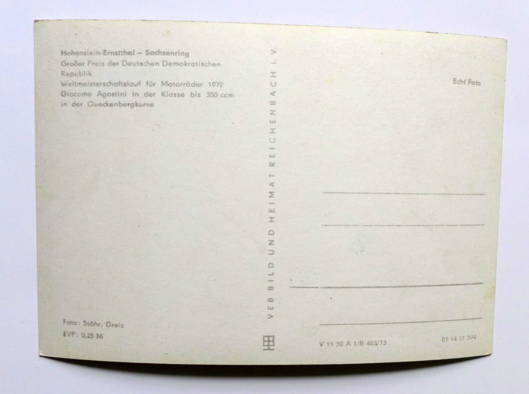 DDR Foto AK Sachsenring WM Motorräder 1972 Agostini Oldtimer