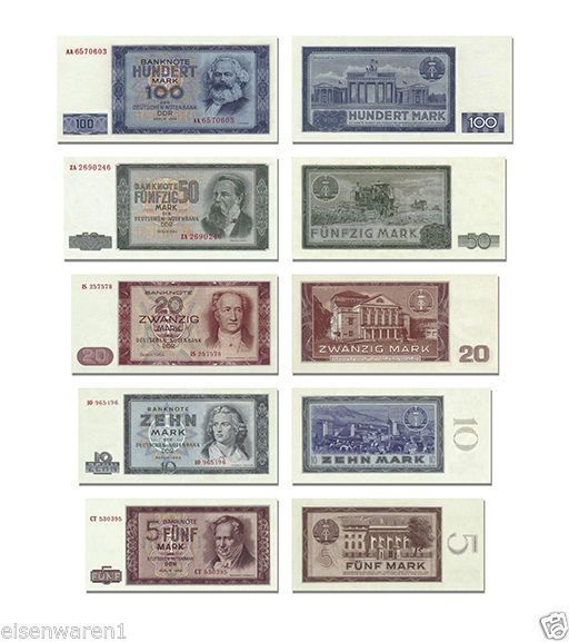 DDR Geldscheine 1964, von 5 bis 100 DDR Mark, TOP Reproduktion