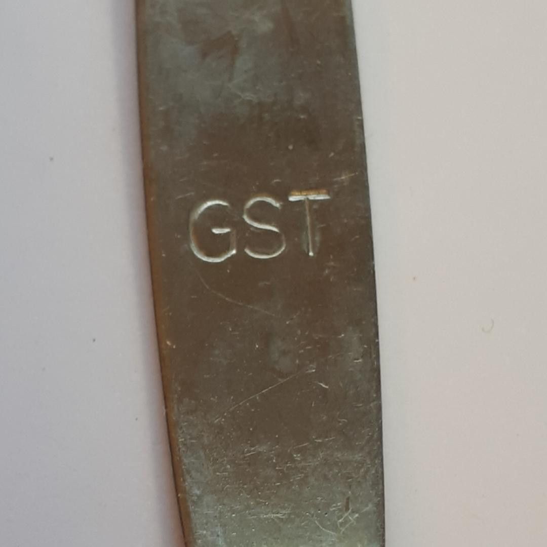DDR GST Gesellschaft für Sport und Technik Besteck Gabel K 4 * Gesamtlänge: ca. 17,5 cm * Variantenauswahl bitte in der Liste treffen! - Schrift waagerecht - Schrift senkrecht Zustand: gut - gebraucht mit kleinen Gebrauchsspuren Abbildung ist beispielhaft, Abweichungen kommen vor!