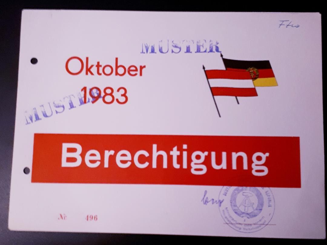 DDR MdI Berechtigungskarte Oktober 1983 MUSTER