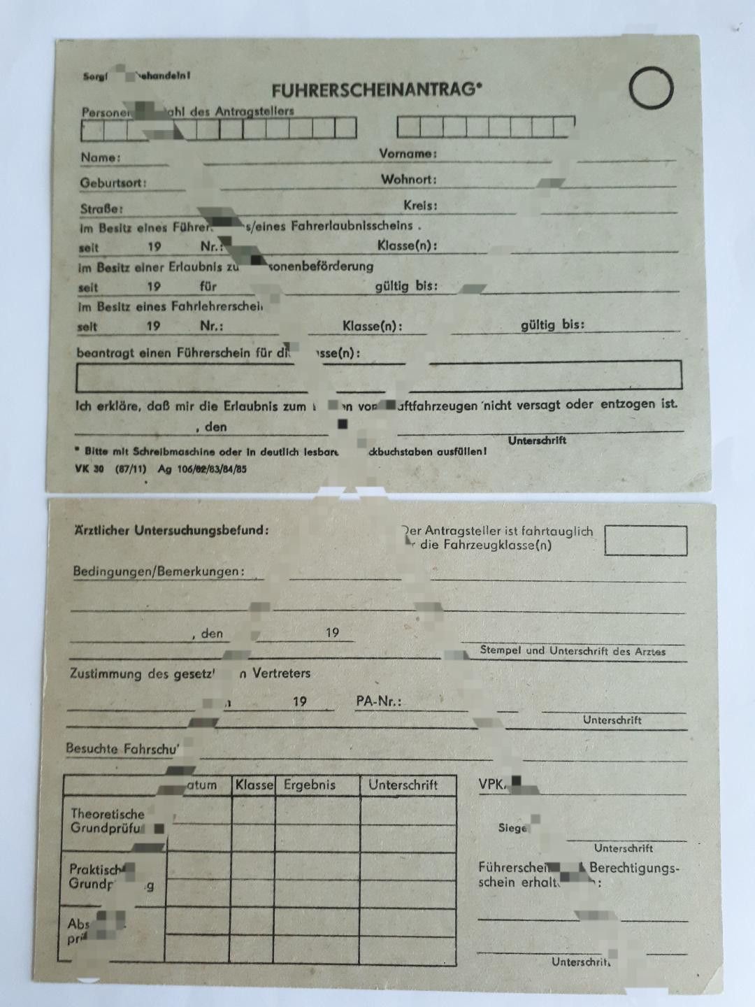 DDR MdI Vordruck Führerscheinantrag blanko