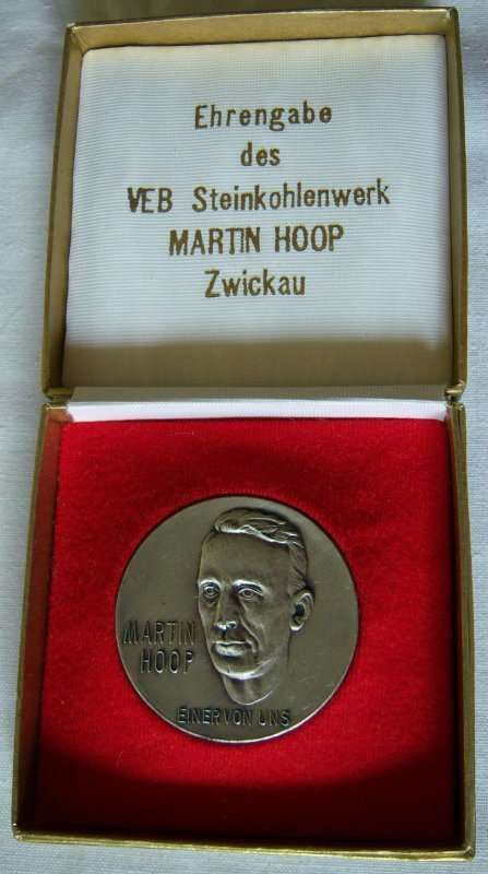 DDR Medaille Ehrengabe des VEB Steinkohlewerk Martin Hoop Zwickau Etui