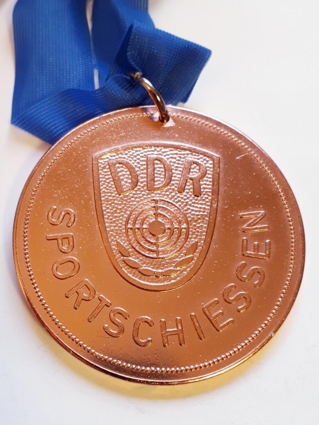 DDR Medaille GST Bezirksmeisterschaften Sportschießen Frankfurt/Oder Ko. * Durchmesser: ca. 6 cm * die gewünschte Variante (bronze-silber-gold) bitte in der Liste treffen! Zustand: gut - gebraucht mit kleinen Gebrauchsspuren