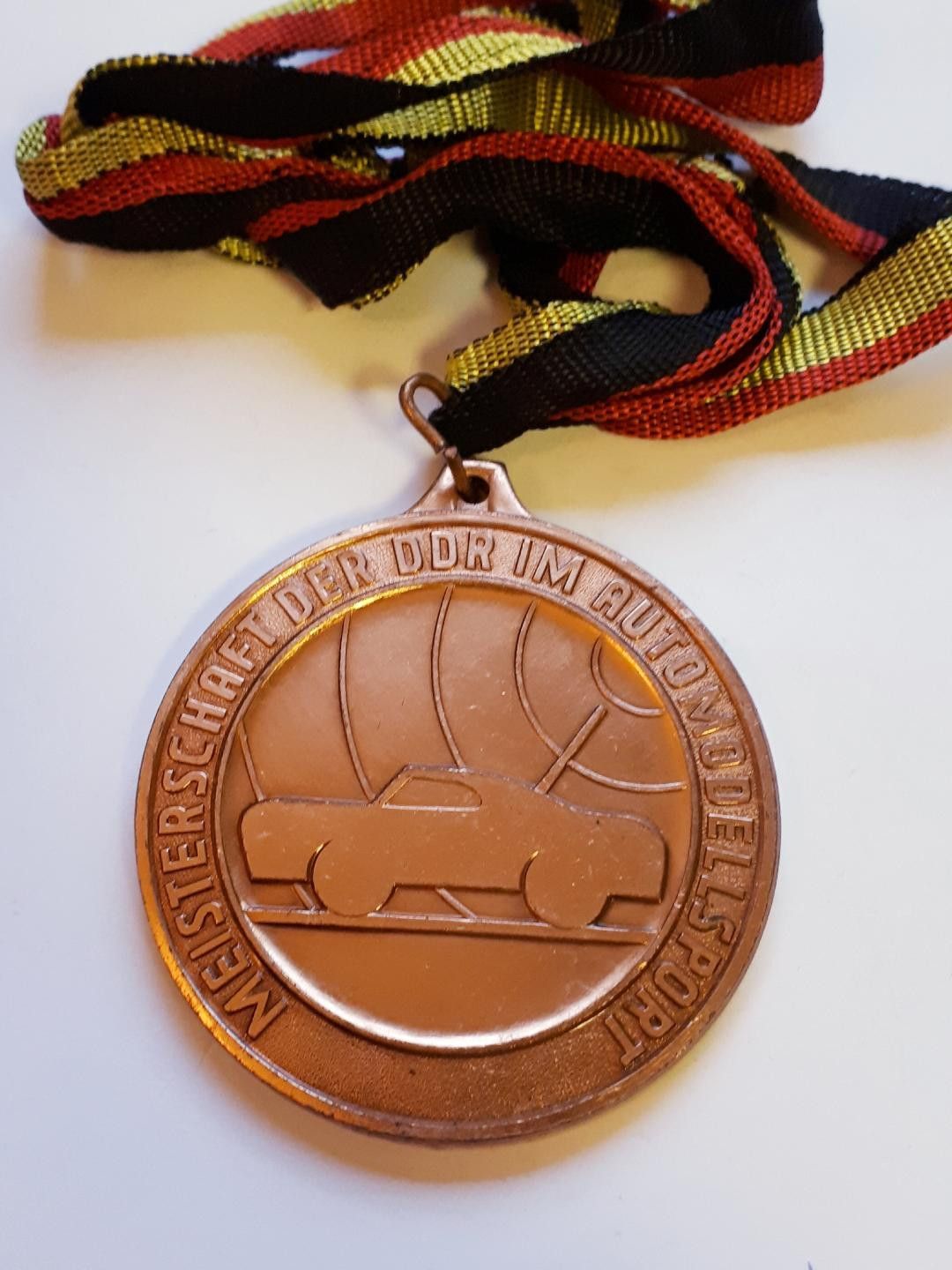 DDR Medaille Meisterschaft der DDR im Automodellsport Ko. * Durchmesser: ca. 6 cm * die gewünschte Variante (bronze-silber-gold) bitte in der Liste auswählen! Zustand: gut - gebraucht mit kleinen Gebrauchsspuren