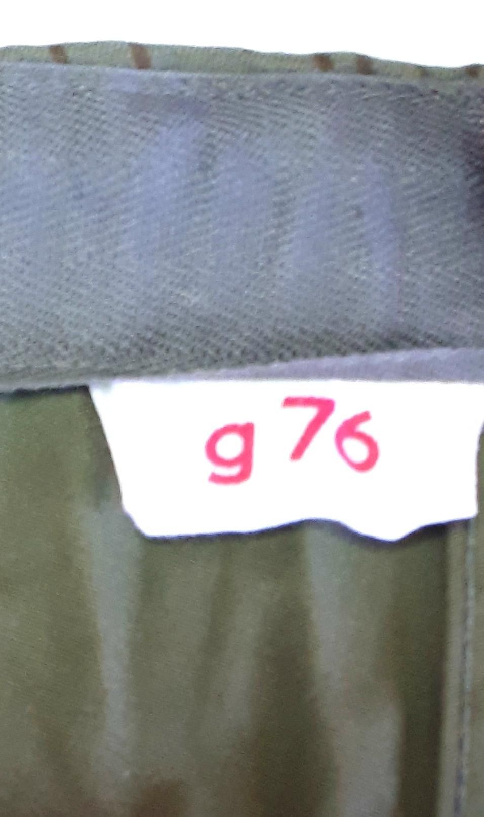 Original DDR NVA Feldhose für Damen strichtarn K 43 Zustand: neu - ungetragen Größe: g 76 (76 = Konfektion D 38), sehr schmal im Bund (siehe Bild 4) * Gummizug rückseitig * Reißverschluß linksseitig (im Gegensatz zu der Herrenhose hat sie nur eine Einschubtasche und keinen Frontverschluß) * Knöpfe an den Beintaschen sind verdeckt Bild 1-3 ist beispielhaft, weil selbst meine schmale Kleiderpuppe zu "dick" war :-), ab Bild 4 handelt es sich um die Damenhose.