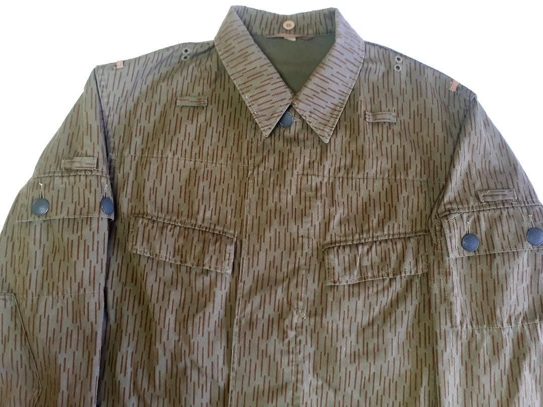 DDR NVA Feldjacke strichtarn 70er Jahre verschiedene Größen K 41 * Größenauswahl bitte in der Liste treffen Zustand: gut - gebraucht mit einigen Gebrauchsspuren (Lagergeruch kommt vor) - Größe g 44: in der rechten Armtasche befindet sich ein großes Loch Zustand: gut - gebraucht (Jacken können verblichen sein, Seitentaschen können fehlen, Verwaschungen,Lagergeruch,Tragespuren kommen vor) Abbildung ist beispielhaft, Abweichungen kommen vor!