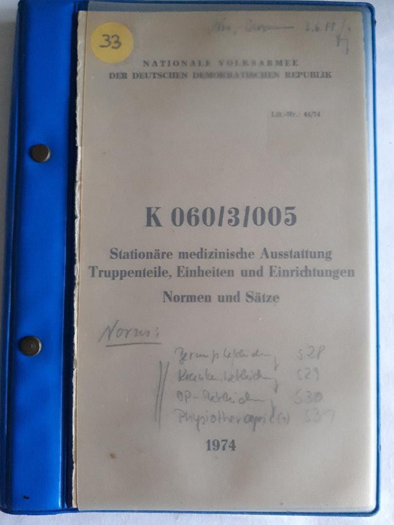 DDR NVA K 060/3/005 Stationäre medizinische Ausstattung * Truppenteile,Einheiten und Einrichtungen - Normen und Sätze Zustand: gut - gebraucht mit kleinen Gebrauchsspuren (Bräunungsspuren kommen altersbedingt vor sowie einige schriftliche Anmerkungen)