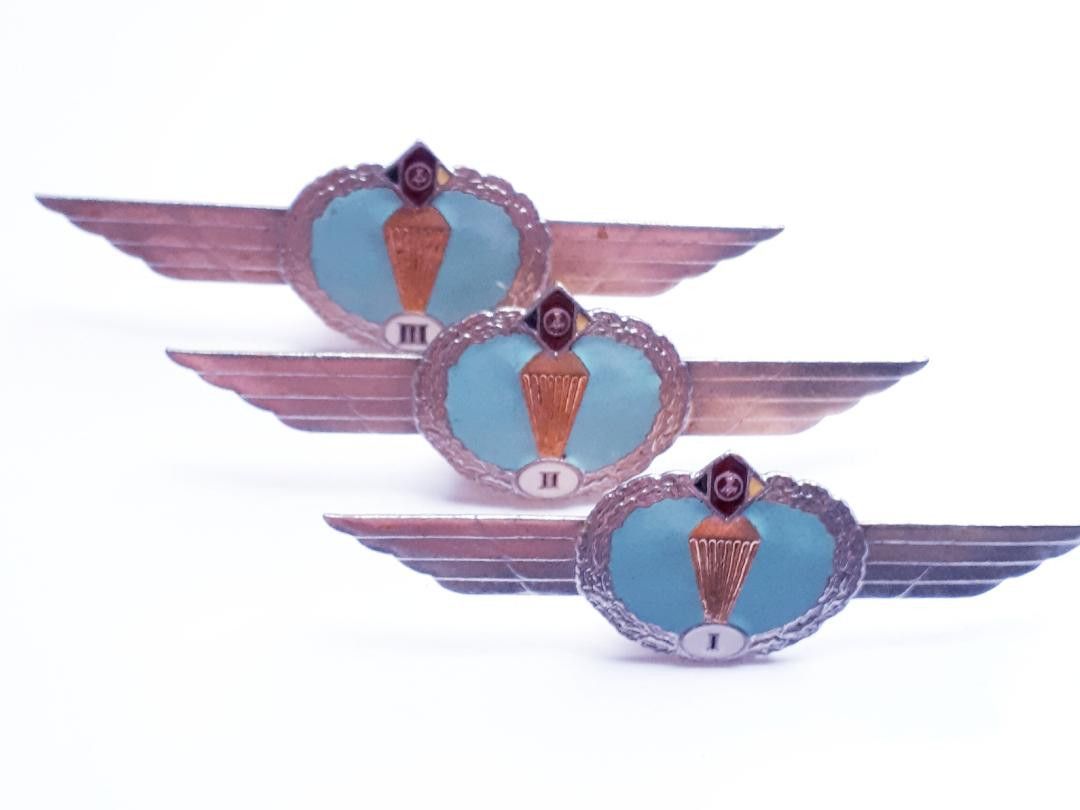 DDR NVA Klassifizierungsabzeichen Fallschirmdienst verschiedene Varianten Repro K. * die gewünschte Variante bitte in der Liste auswählen! * Schraubentyp 4 Zustand: gut - gebraucht mit kleinen Gebrauchsspuren