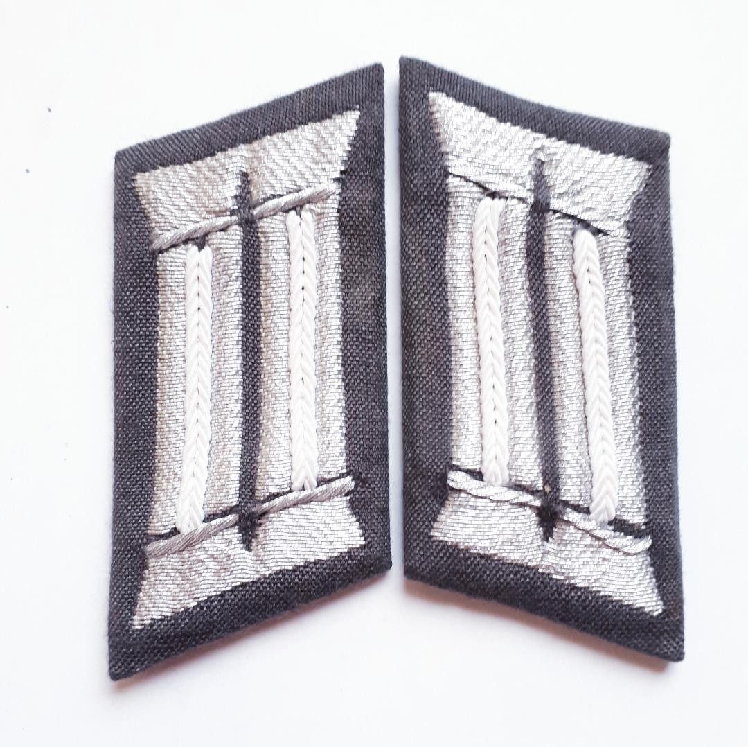 DDR NVA Kragenspiegel mot. Schützentruppen Offizier K 53 Zur weißen Waffenfarbe gehören folgende Truppenteile: * motorisierte Schützentruppen * Aufklärungstruppen * Militärmusikkorps Lieferumfang: 1 Paar (2 Stück) Zustand: gut - gebraucht mit kleinen Gebrauchsspuren Abbildung ist beispielhaft!