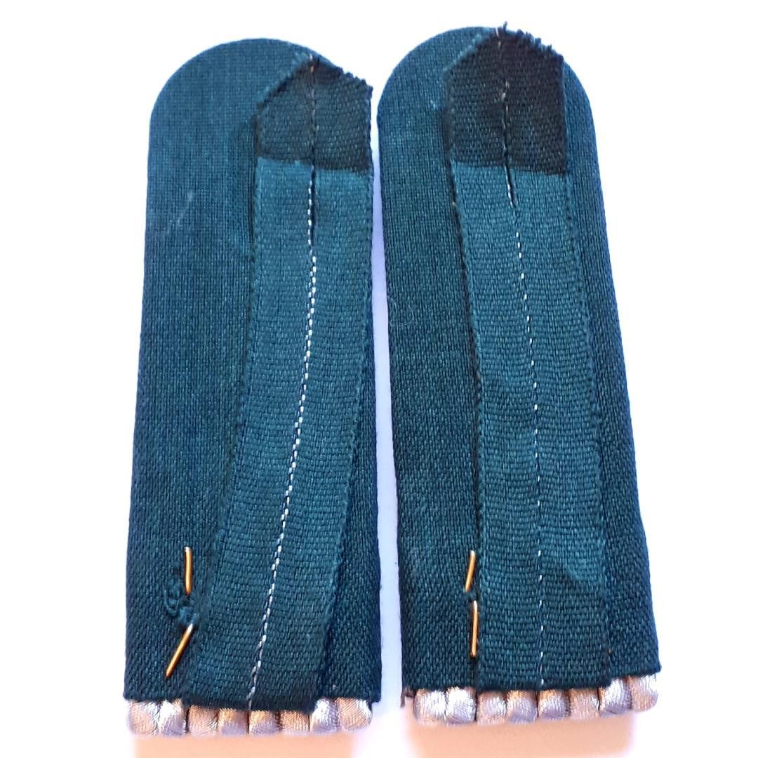 DDR NVA Schulterklappen Rückwärtiger Dienst Leutnant K 53 Zur dunkelgrünen Waffenfarbe gehören folgende Truppenteile: * militärmedizinischer Dienst * Militärjustiz * Finanzverwaltung Lieferumfang: 1 Paar (2 Stück) Zustand: gut - gebraucht mit kleinen Gebrauchsspuren
