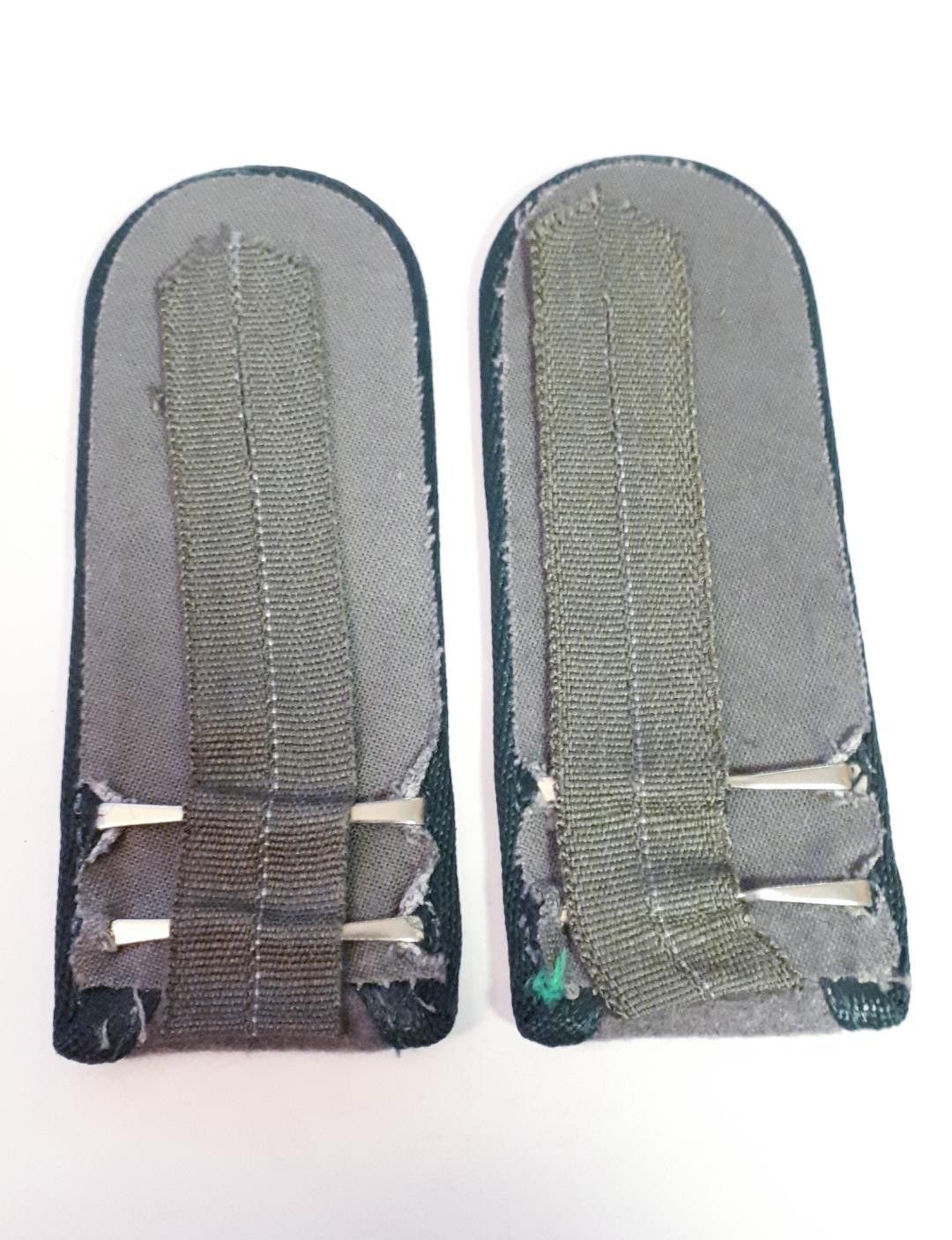 DDR NVA Schulterklappen Rückwärtiger Dienst Stabsgefreiter K 53 Zustand: gut - gebraucht mit kleinen Gebrauchsspuren Zur dunkelgrünen Waffenfarbe gehören folgende Truppenteile: * militärmedizinischer Dienst * Militärjustiz * Finanzverwaltung Lieferumfang: 1 Paar (2 Stück) Abbildung ist beispielhaft!