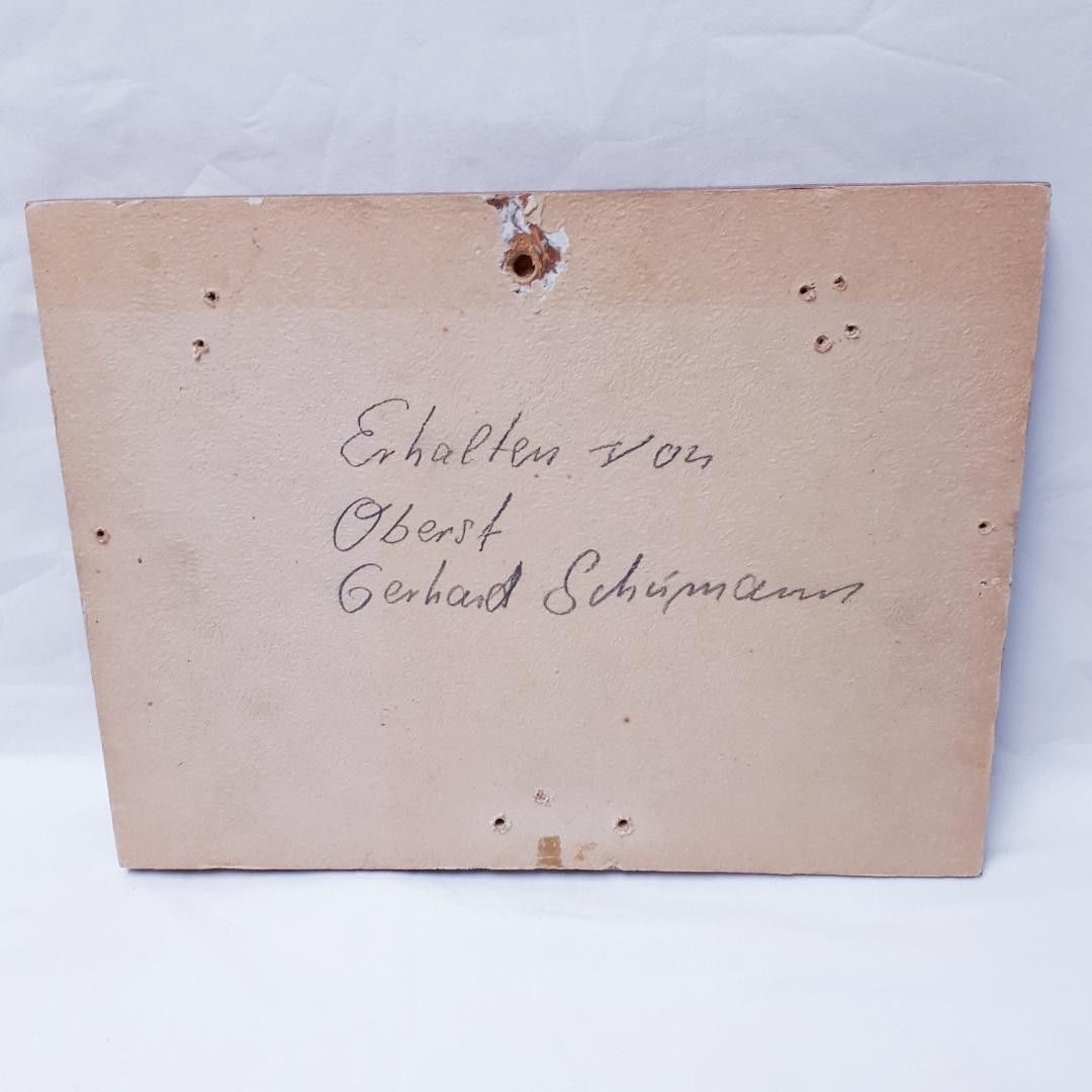 DDR NVA Wandbild Wandplatte Heer Luftwaffe Volksmarine K 5 * auf der Rückseite befindet sich eine Anmerkung des ehemaligen Besitzers * Maße (total): ca. 28,9 cm x 21,5 cm x 1,8 cm * Bildmaß: ca. 23,8 cm x 18,6 cm * Gewicht: ca. 1,094 kg Zustand: gut - gebraucht mit einigen und altersbedingten Gebrauchsspuren wie z.B. etlichen Verkratzungen sowie etwas lädierte Rückseite