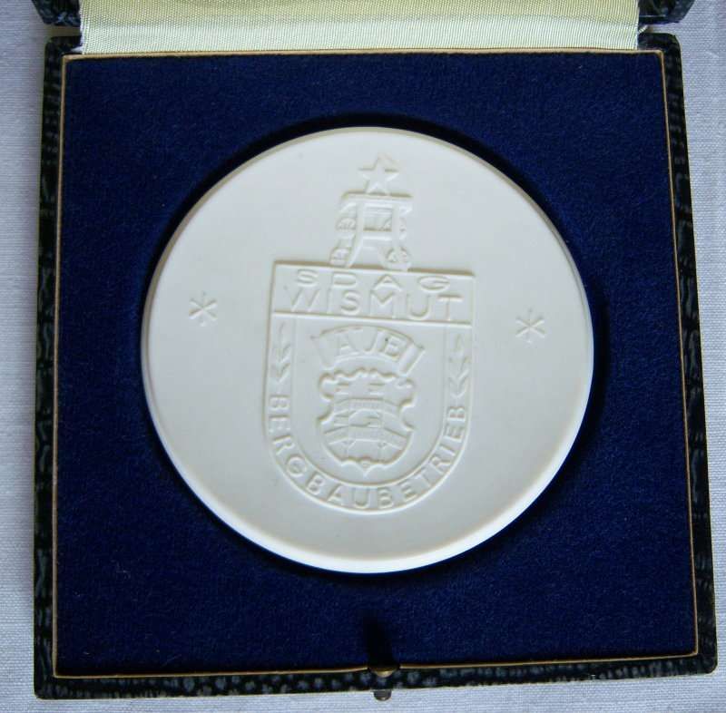 DDR Porzellan Medaille Meißen SDAG Wismut Bergbau Aue Für Langjährige Mitarbeit