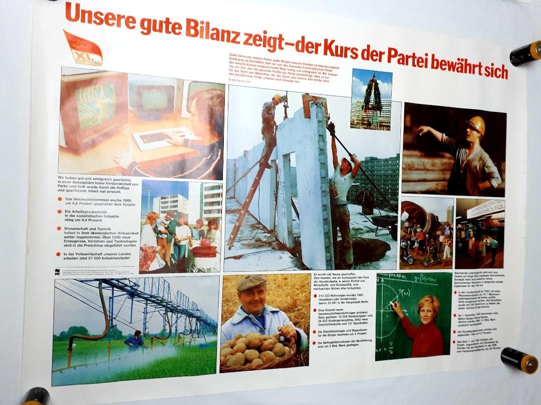 DDR Poster Plakat Unsere gute Bilanz zeigt- der Kurs der Partei bewährt sich K. * Maße: ca. 61 cm x 85,5 cm Zustand: gut - gebraucht mit einigen Gebrauchsspuren (Knicke, kleine Risse und Schmutzspuren können vorkommen)