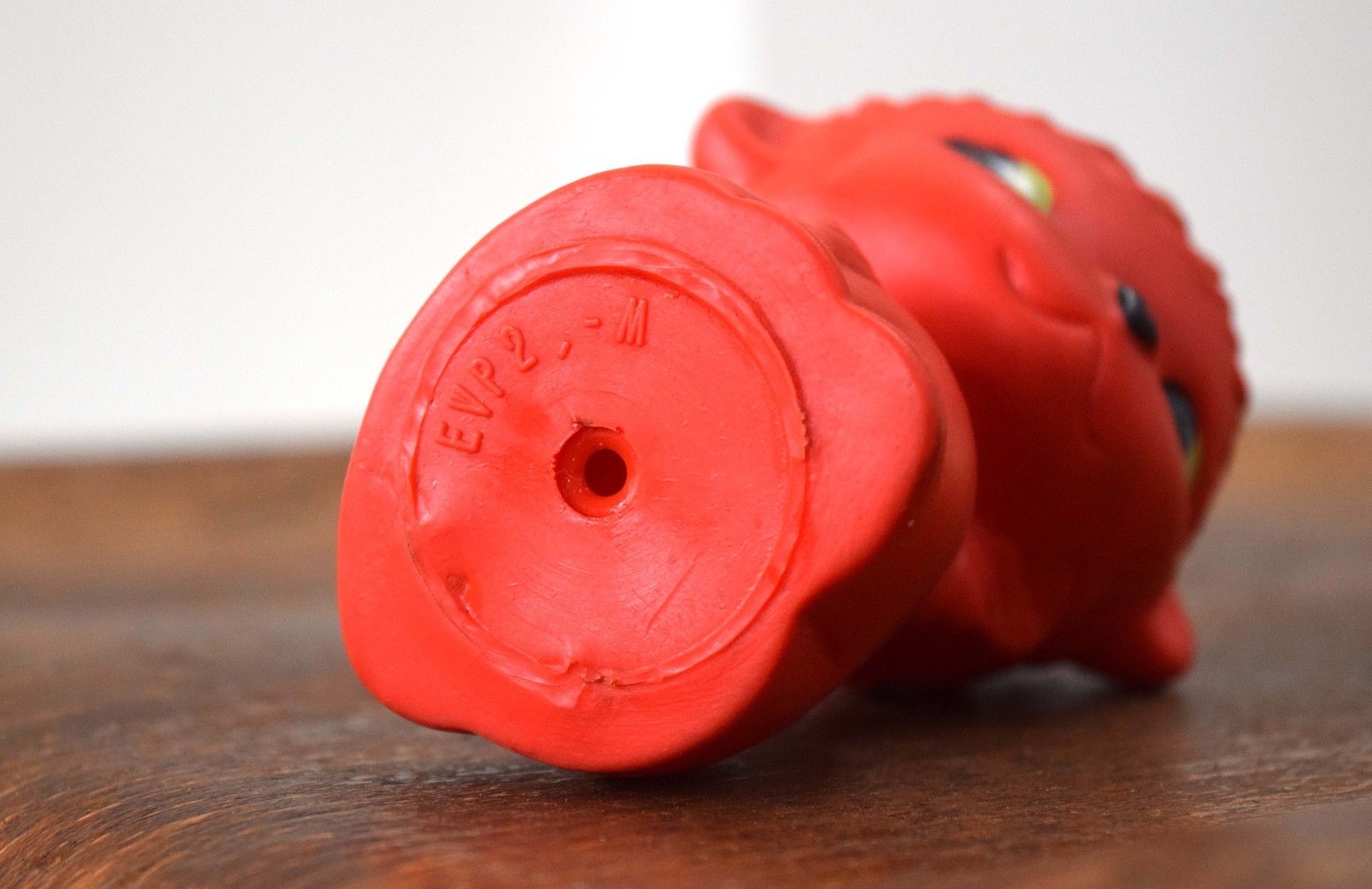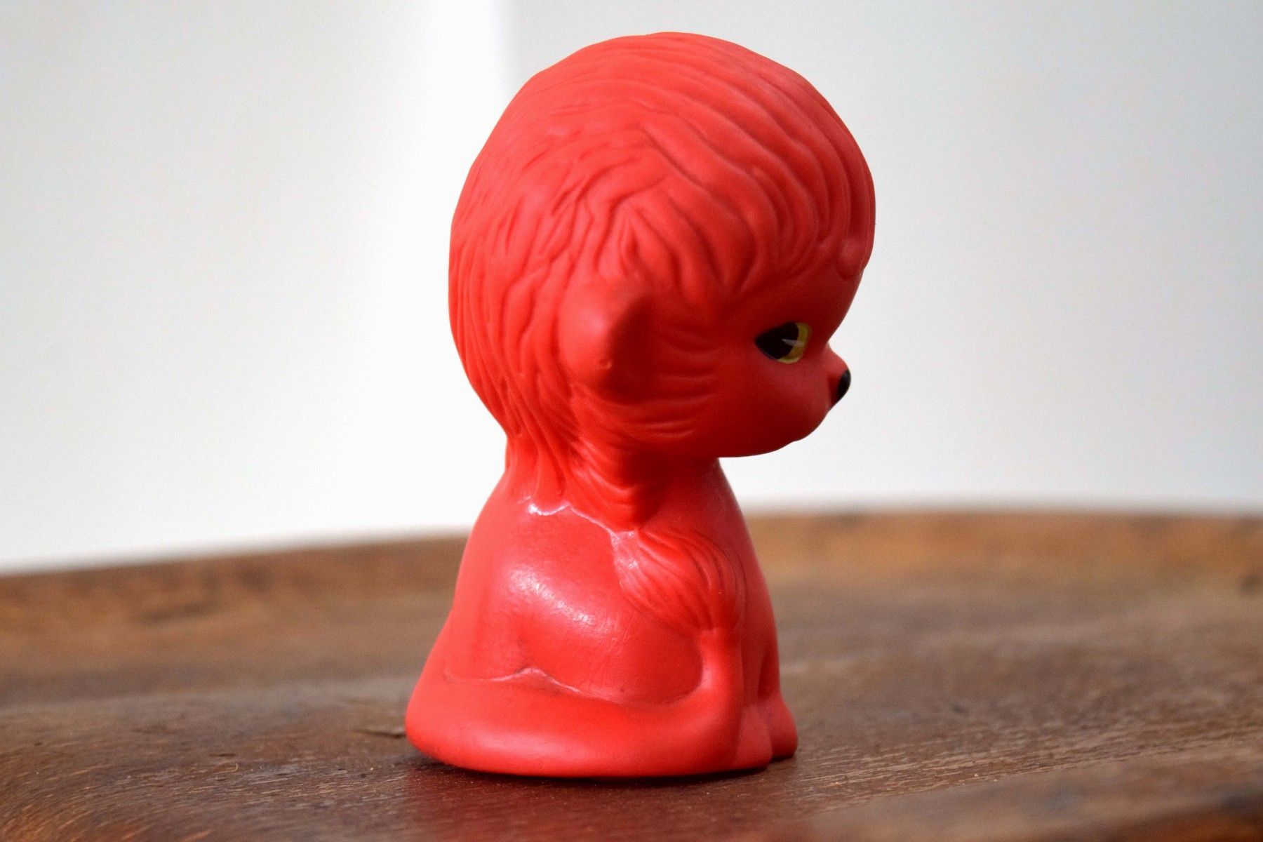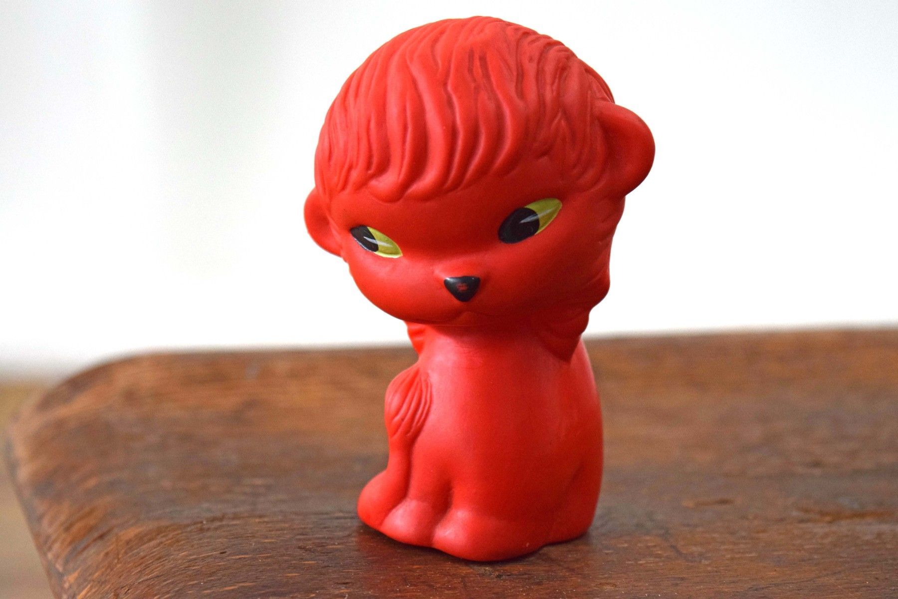 DDR Quietsch Tier Figur Gummitier Antik Rot Löwe Alt Vintage Bade Spielzeug
