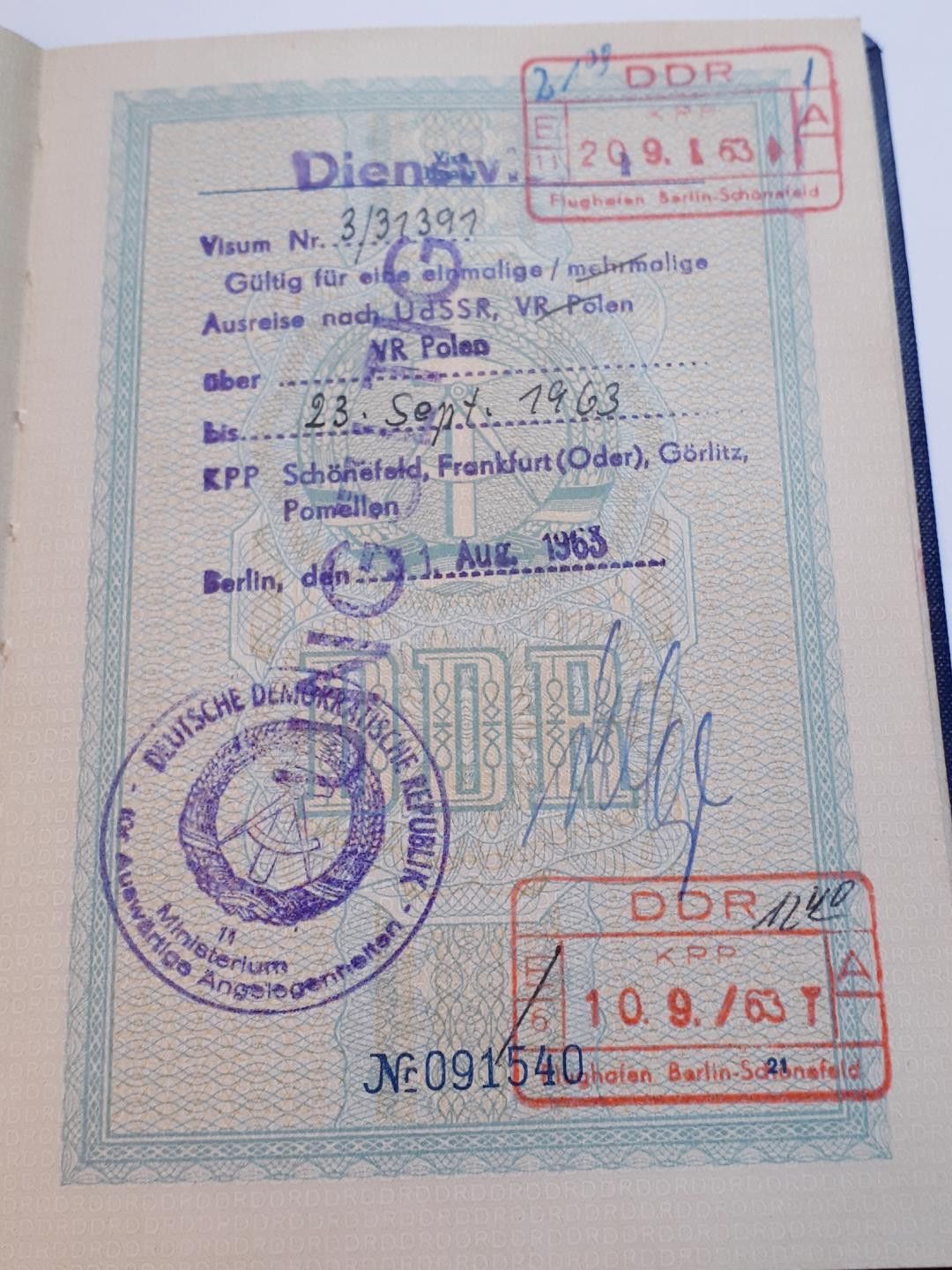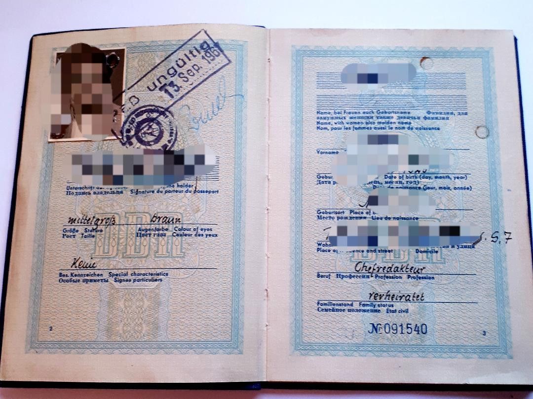 DDR Reisepass eines Chefredakteurs mit zahlreichen Auslandsreisen