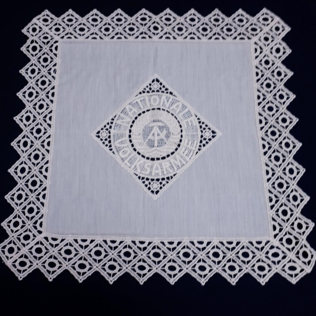 DDR Reservistentuch Ehrenvoll gedient bei den Grenztruppen der DDR KT. * Maße: ca. 62 cm x 64 cm * mit Reservistendeckchen * In Originaltüte Zustand: gut - gebraucht mit kleinen Gebrauchsspuren