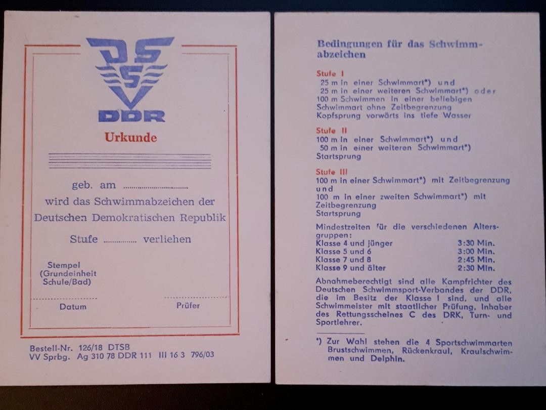 DDR Urkunde DSSV Deutscher Schwimmsport Verband blanko