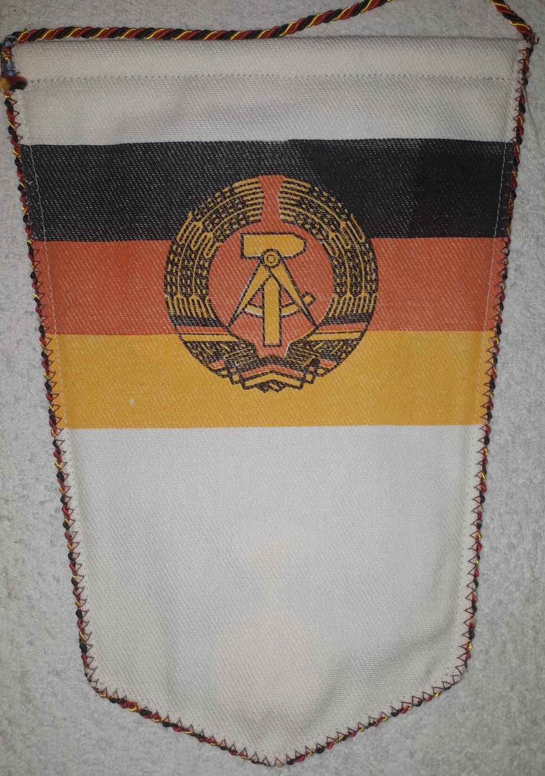 DDR Wimpel Reservistenkollektiv VEB Fischfang Rostock Stammbetrieb (grober Stoff auf der Rückseite) Länge 23 cm Breite oben 16,5 cm Breite unten 11,5 cm *grober Stoff auf der Rückseite,diese ist auch leicht verblichen Der Wimpel befindet sich in einem guten Zustand,dennoch kann ich Lagerspuren (Abdrücke) nicht ausschließen.