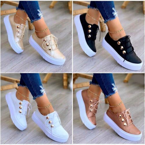 DE Damen Sportschuhe Schnurung Lassige Flache Sportschuhe Schuhe Neue Sneaker