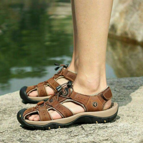 DE Summer Herren Trekkingsandalen Sandale Leder Outdoor Freizeit Schuhe Grobe43