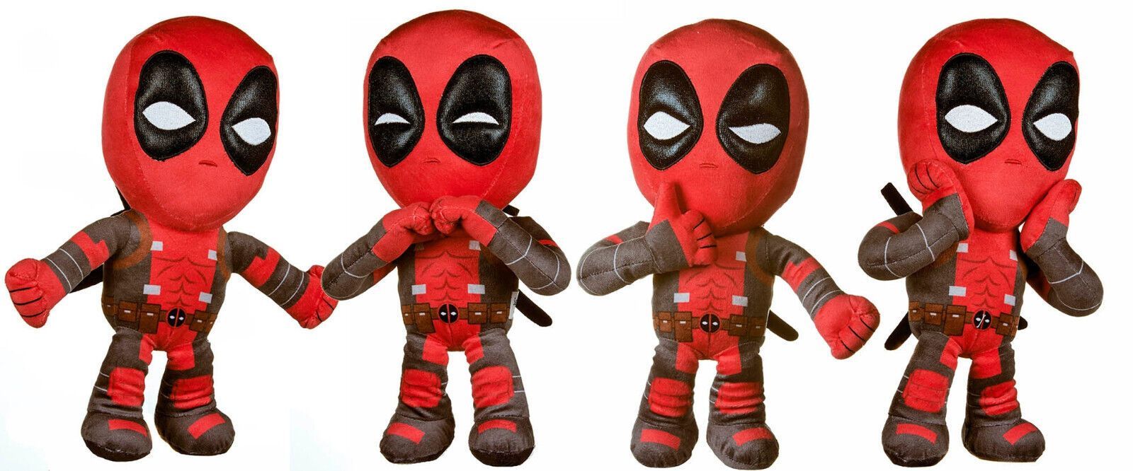 Deadpool Plüsch Figuren Auswählbar 23 30 cm Groß NEU NEU mit Etikett im Sitzen ca. 23 cm Groß im Stehen ca. 30 cm Groß (kann ohne abstüczung nicht stehen) Verschedene Ausführungen zur Auswahl Achtung: Nicht für Kinder unter 3 Jahren geeignet.