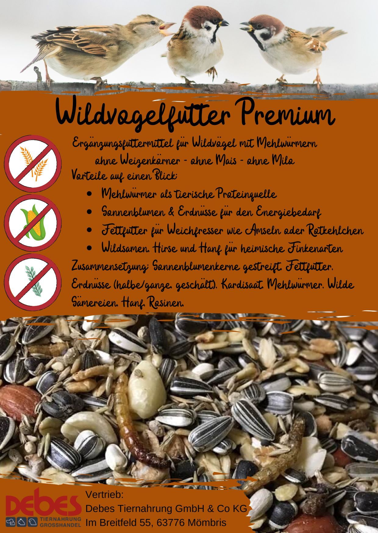 Debes Wildvogelfutter Premium 15 kg mit Mehlwürmern - ohne Milo Mais Weizenkorn