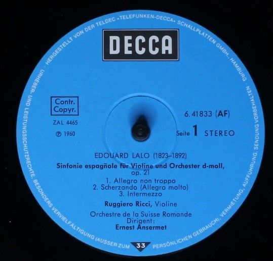 DECCA 6.41833 AF - Édouard Lalo, Maurice Ravel, Ruggiero Ricci, L'Orchestre De