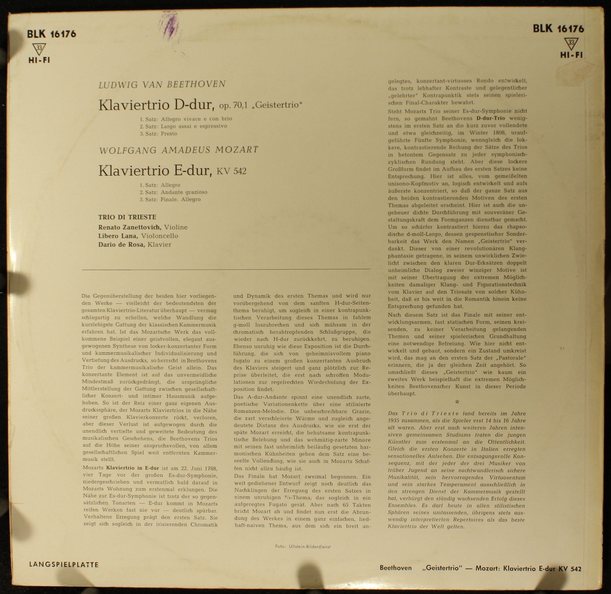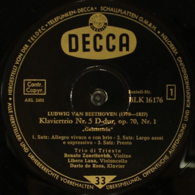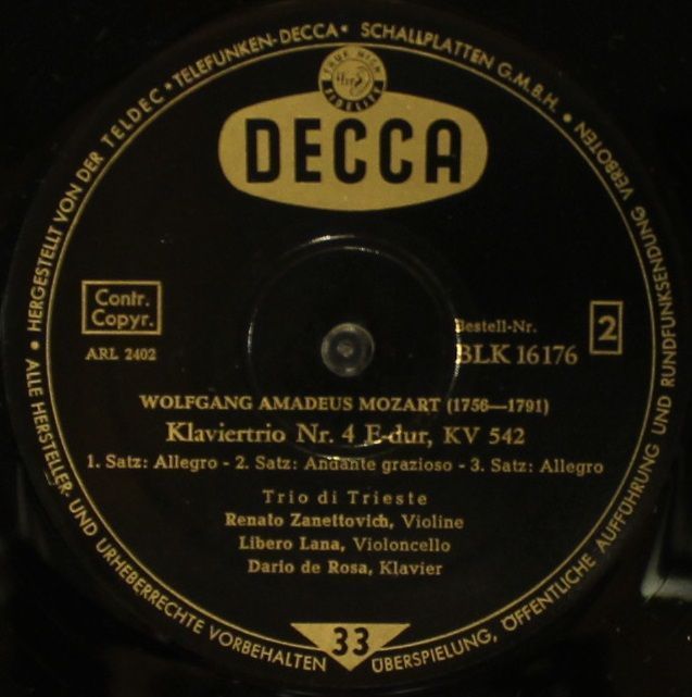DECCA BLK 16176 - Ludwig van Beethoven, Wolfgang Amadeus Mozart, Trio Di Trieste