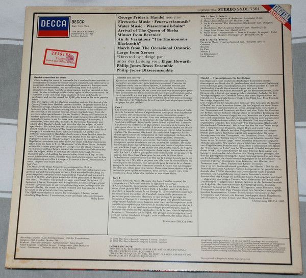 DECCA SXDL 7564 - Georg Friedrich Händel, Philip Jones Brass Ensemble, Elgar Ho