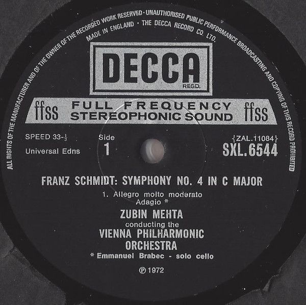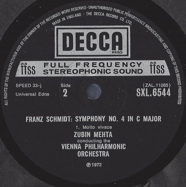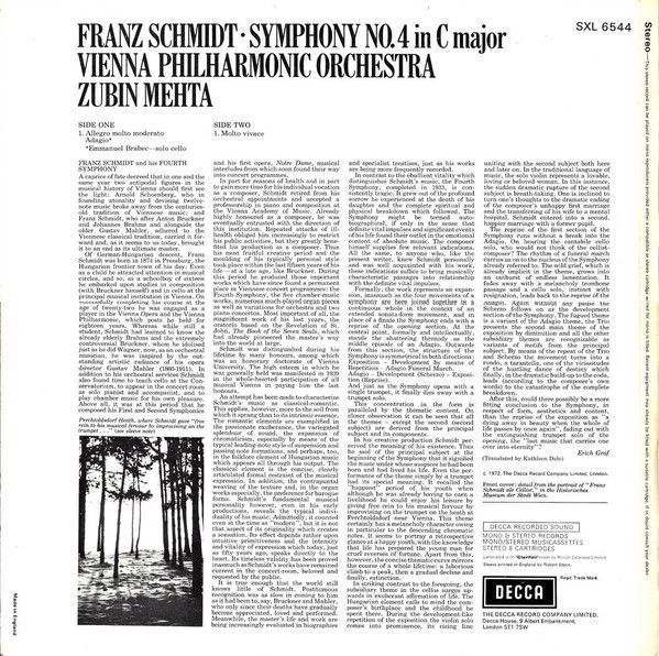 DECCA SXL 6544 - Franz Schmidt, Wiener Philharmoniker, Zubin Mehta - Symphony No