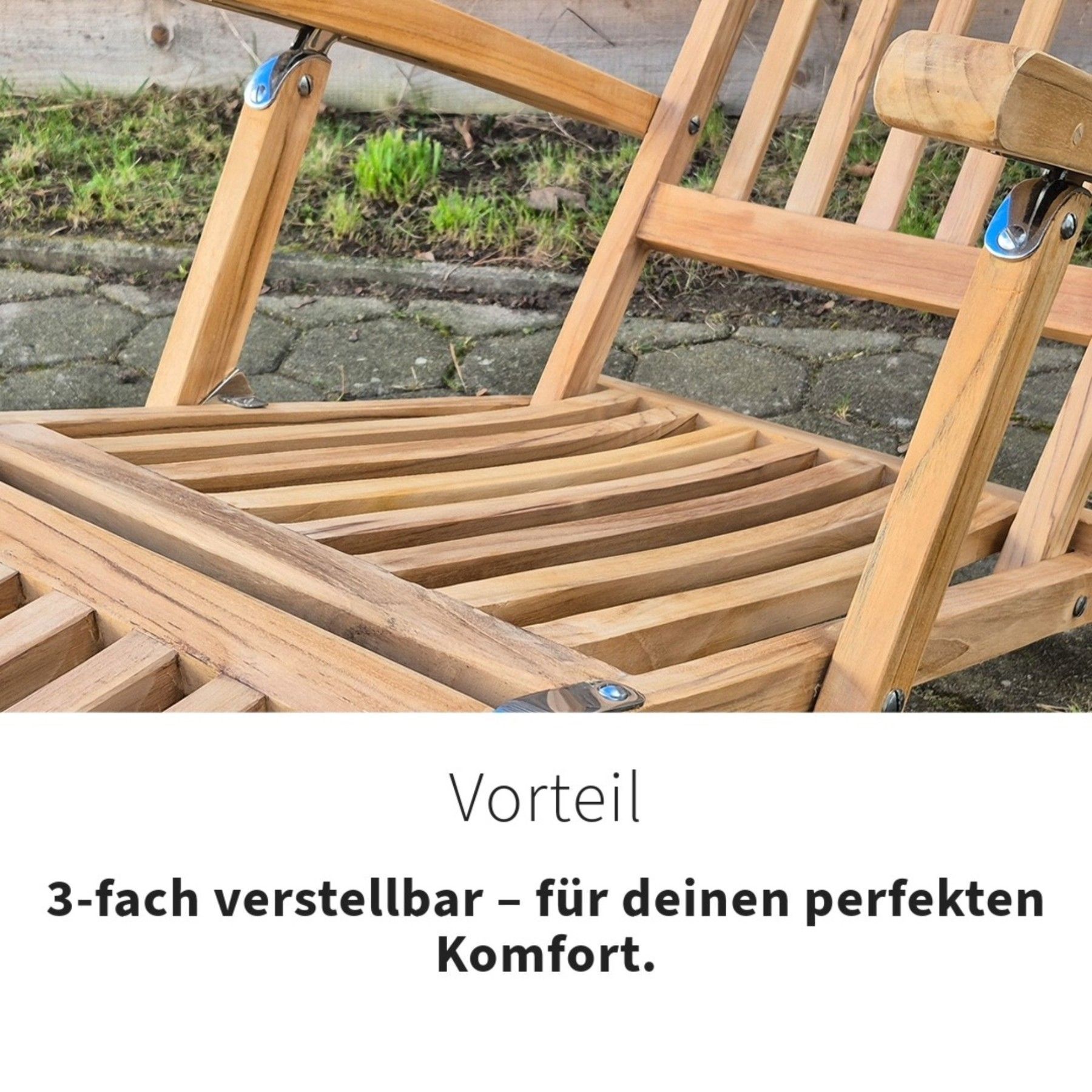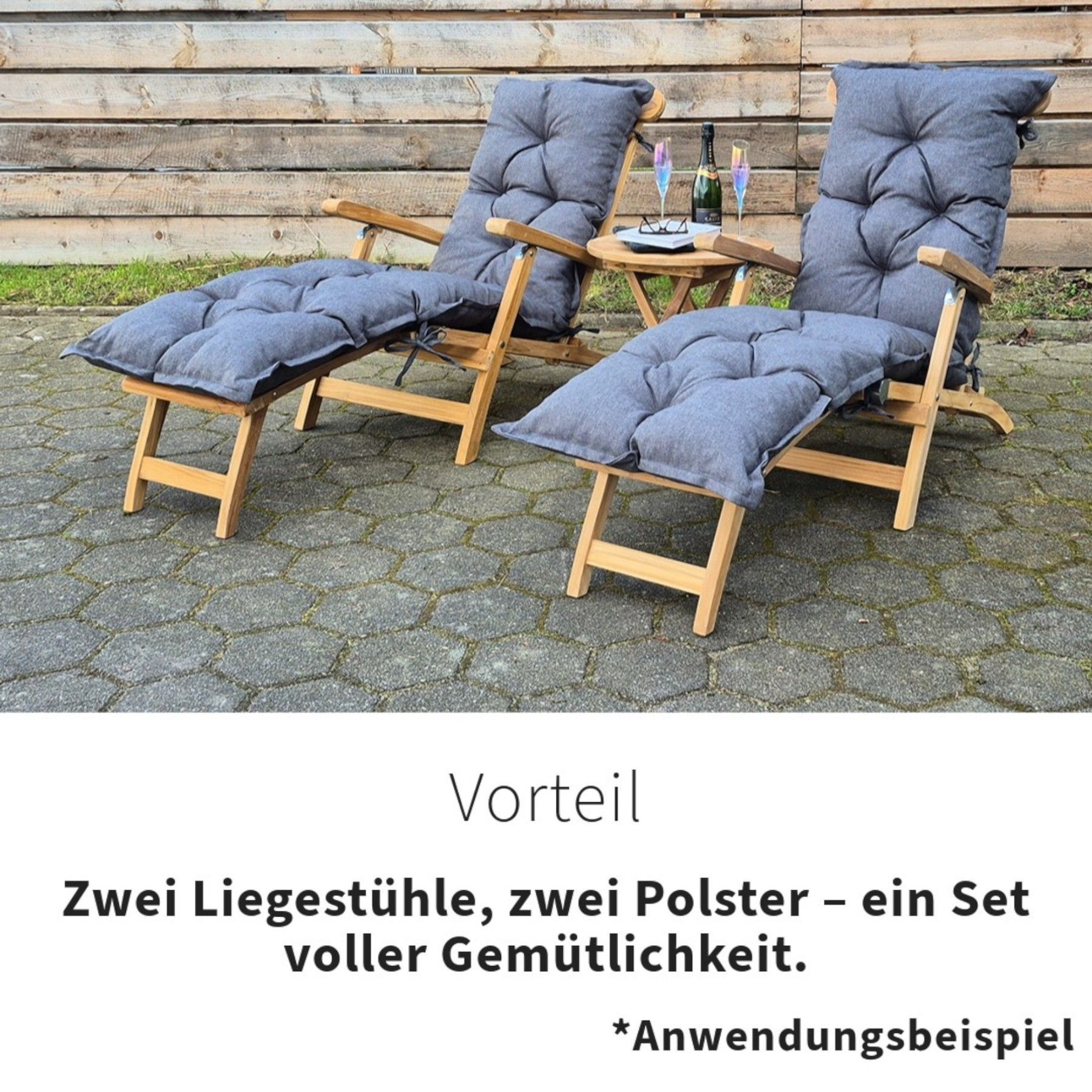 Deckchair Teak Gartenliege Serie Mainz 2er Set mit Beistelltisch Serie Düsseldorf