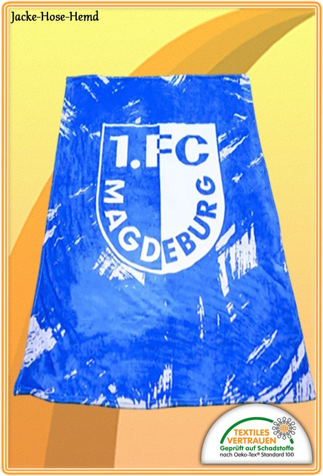Decke 1. FC Magdeburg Kuscheldecke Fleecedecke Blau Weiß Logo Gr: 150x200 NEU