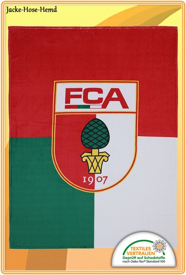 Decke FC Augsburg Logo Rot Grün Weiß Wappen Kuscheldecke Fleecedecke Gr.150x200cm NEU