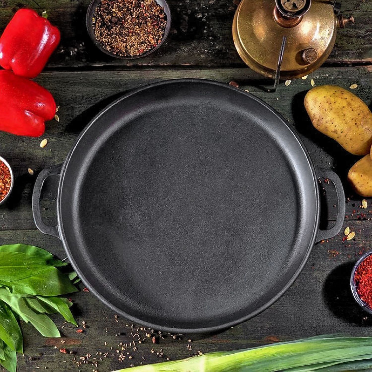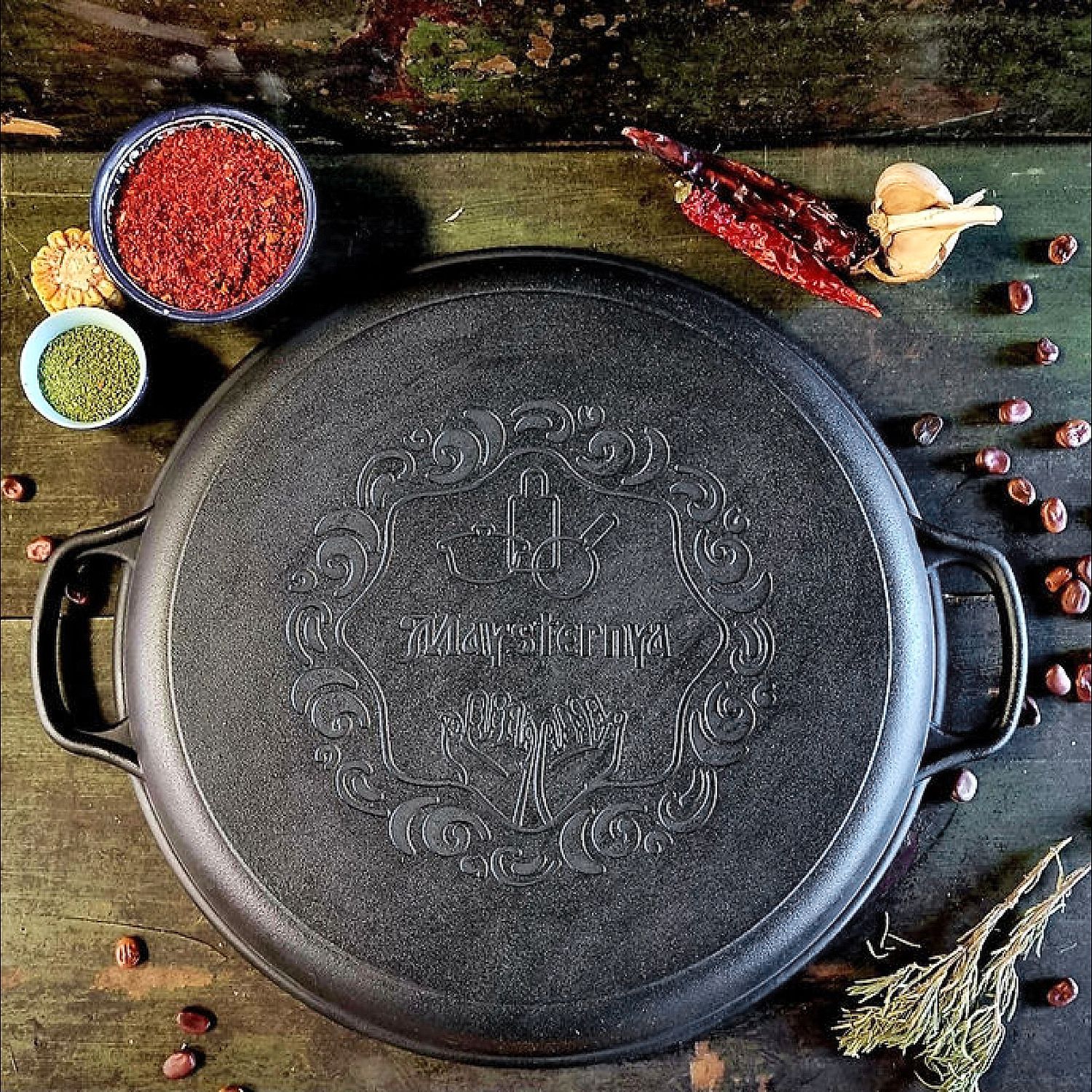 Deckelpfanne Ø34 cm Pfannendeckel aus Gusseisen für Kasan