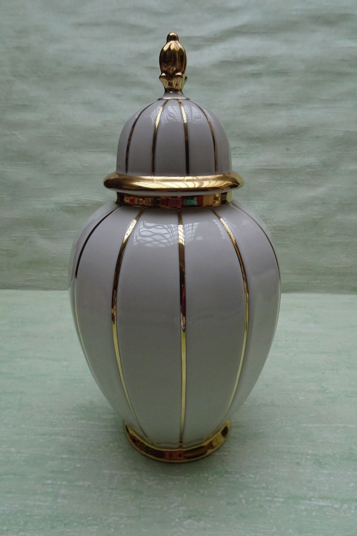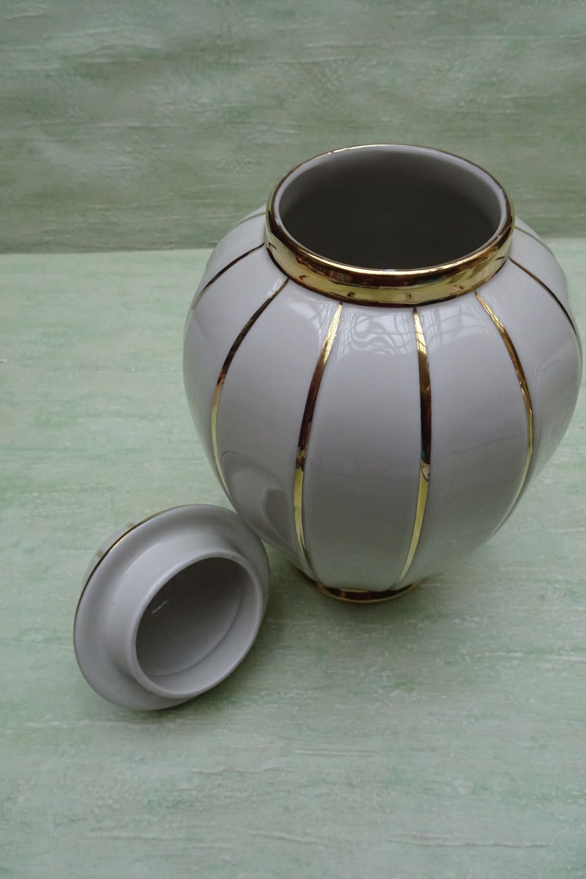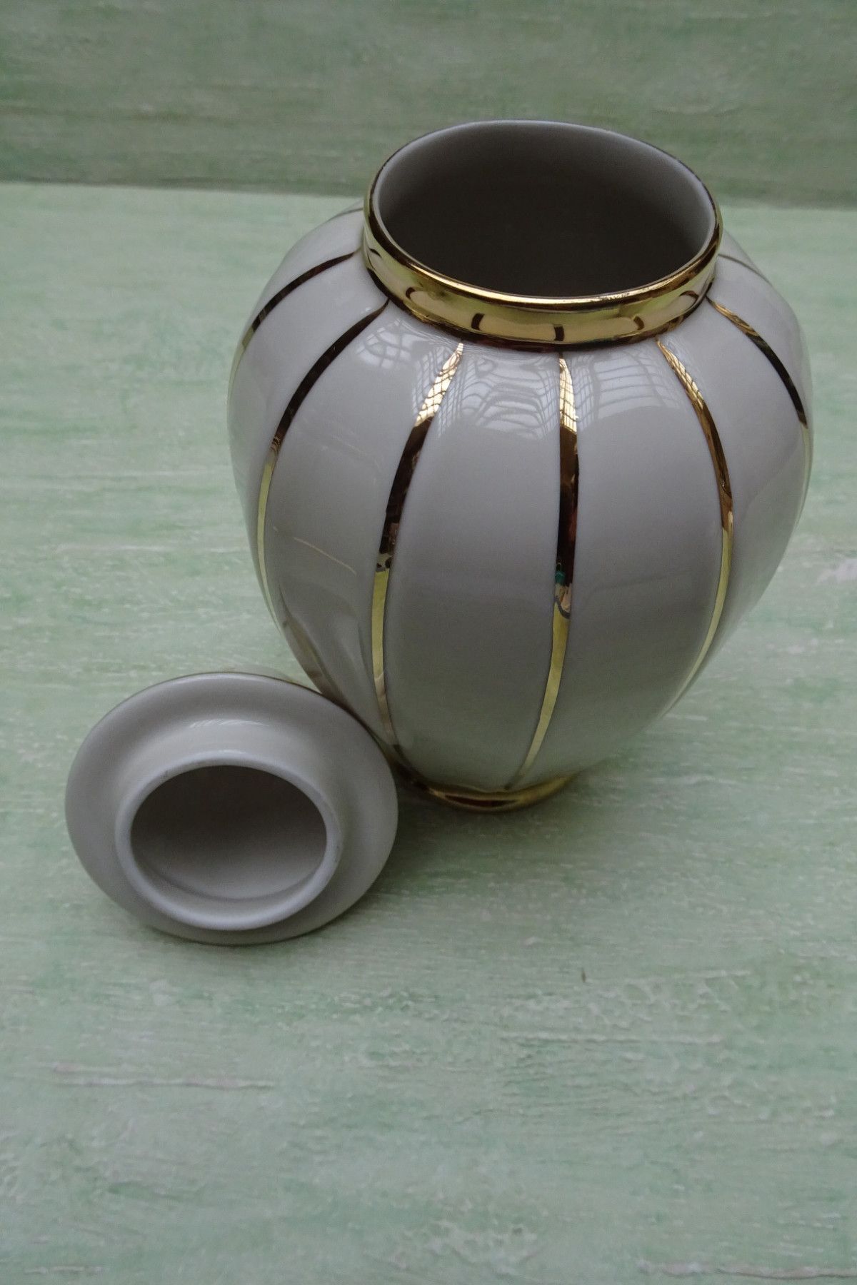 Deckelvasen Urne creme gold gestreift Schwarzenbach Schaller
