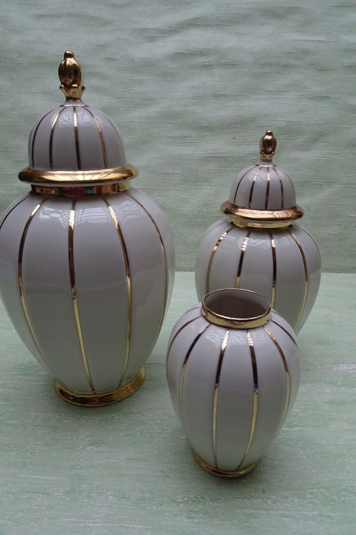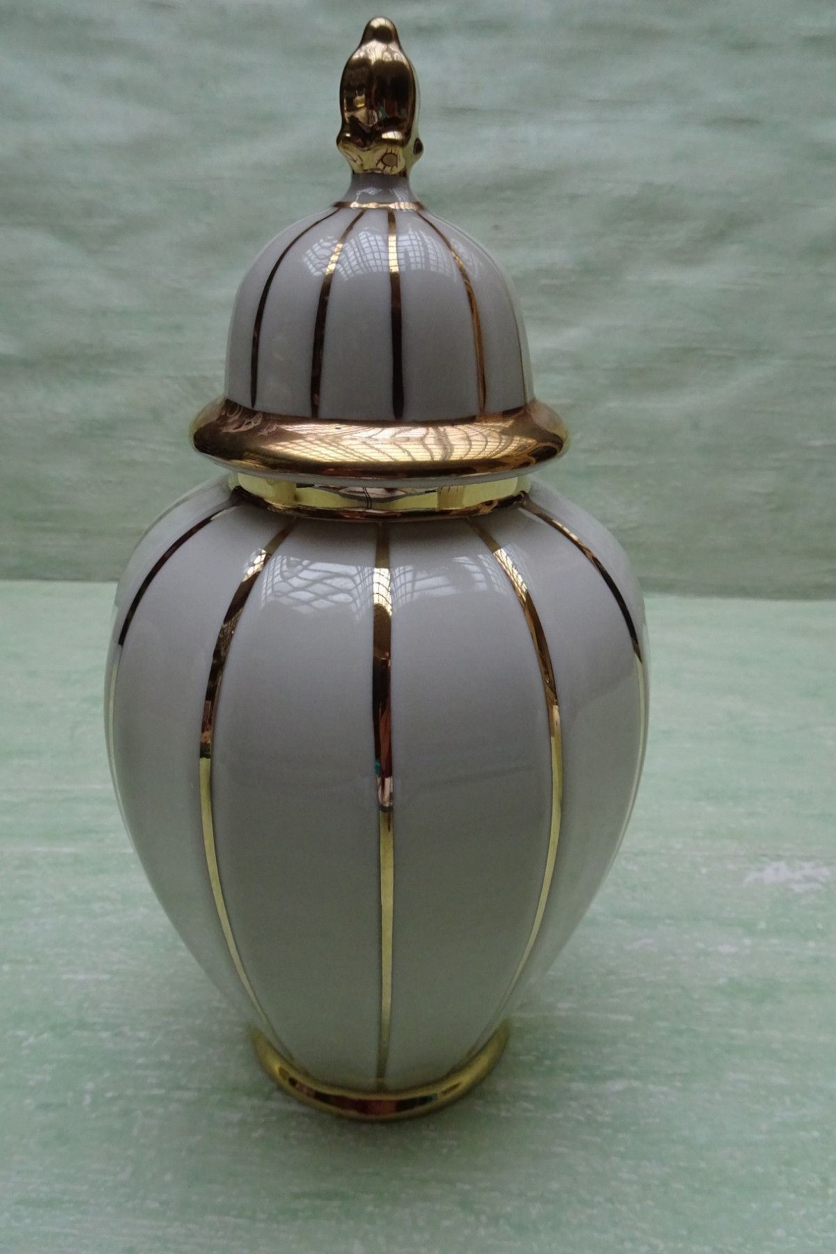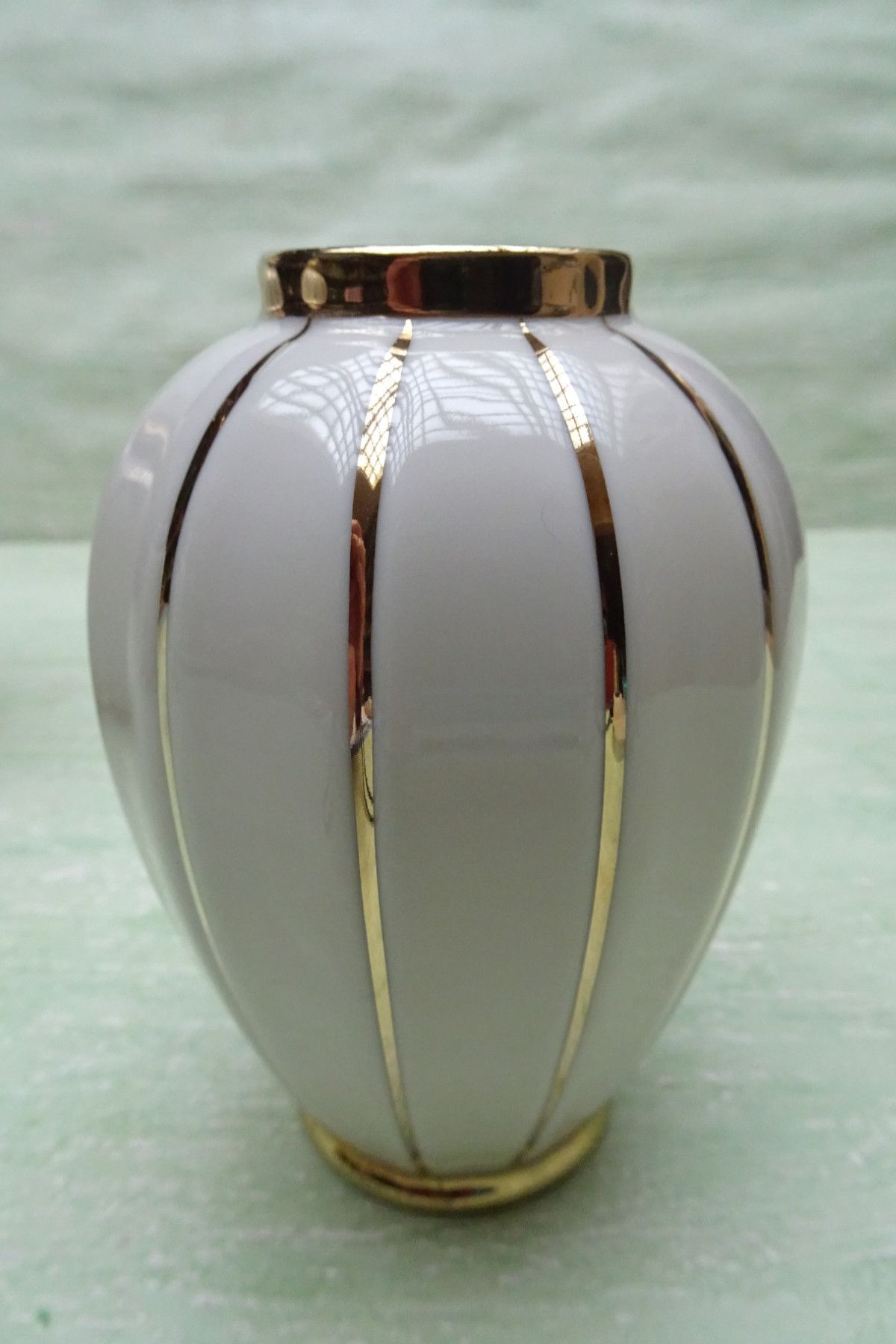 Deckelvasen Urne creme gold gestreift Schwarzenbach Schaller