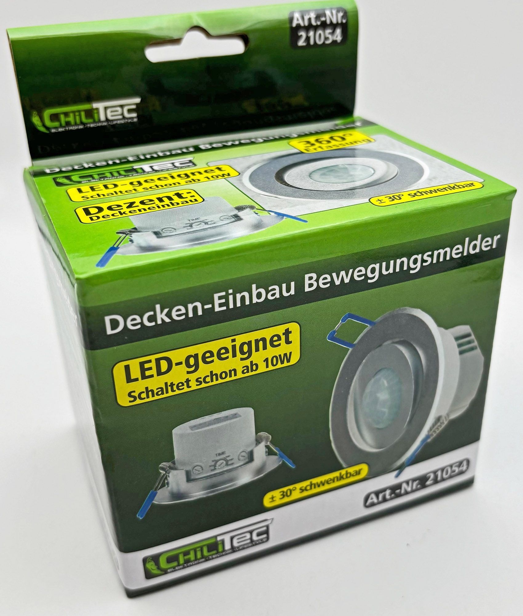 ChiliTec Decken-Einbau-Bewegungsmelder 360° AluPIR Sensor, 6m, schwenkbar, silber