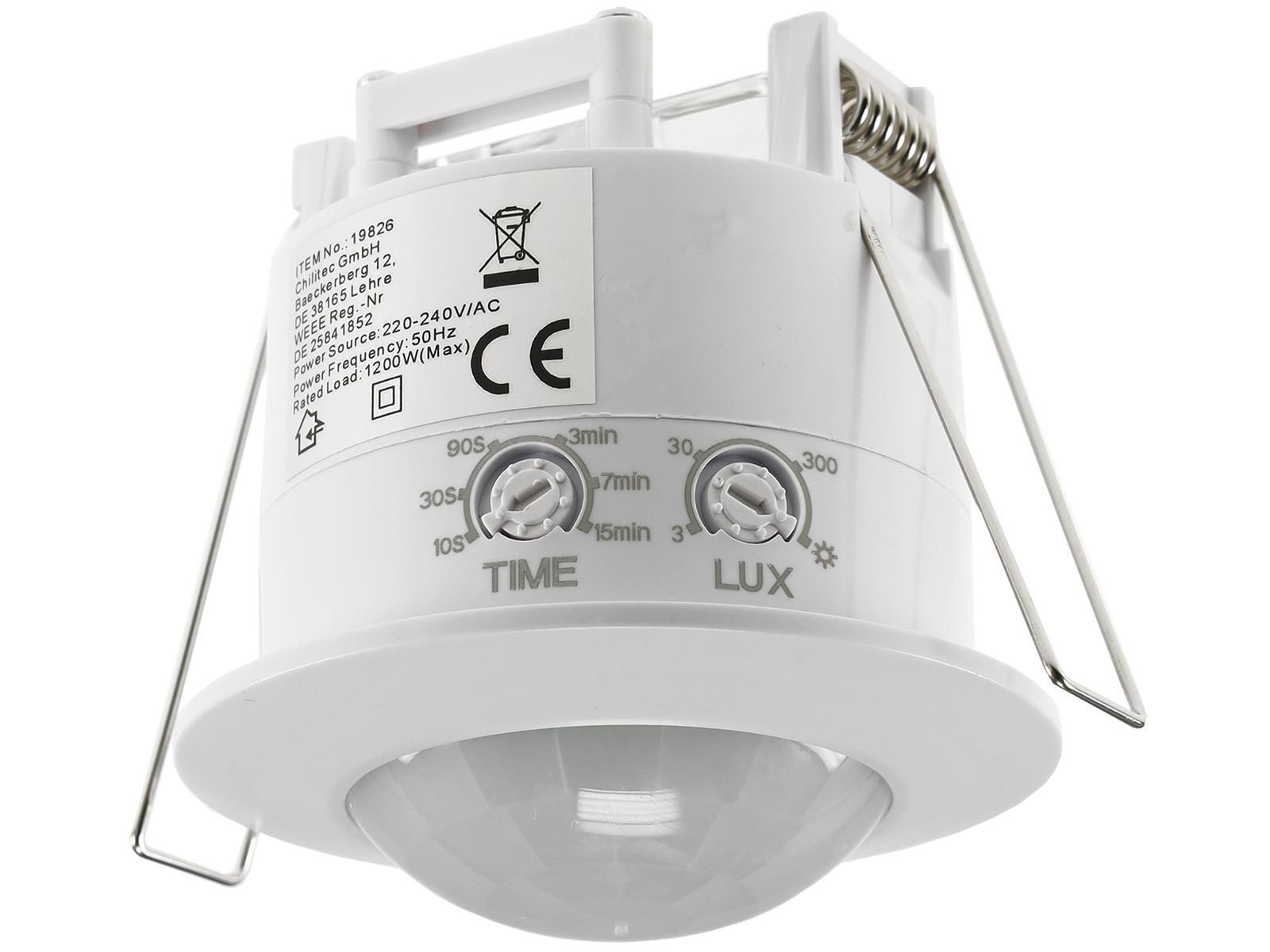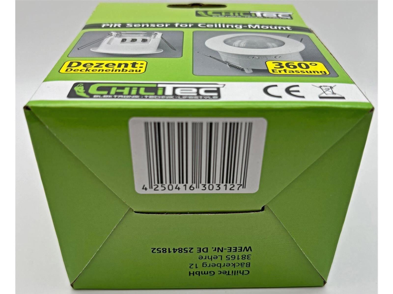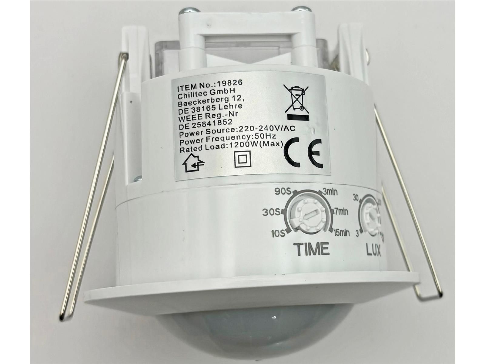 ChiliTec Decken-Einbau-Bewegungsmelder 360° LED geeignet, 6m Detektion, weiß