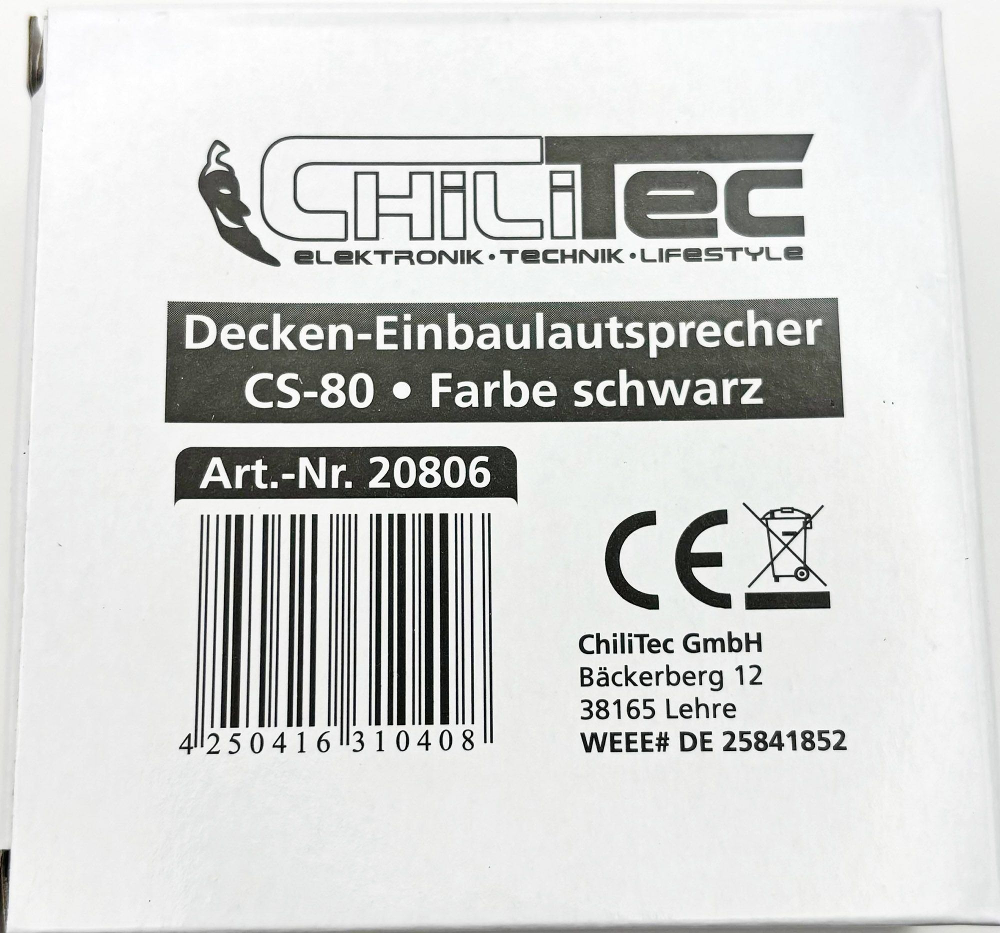 Chilitec Decken-Einbaulautsprecher "CTE-8W" Halogen-Look, 8cm Ø, 6cm Einbau, schwarz