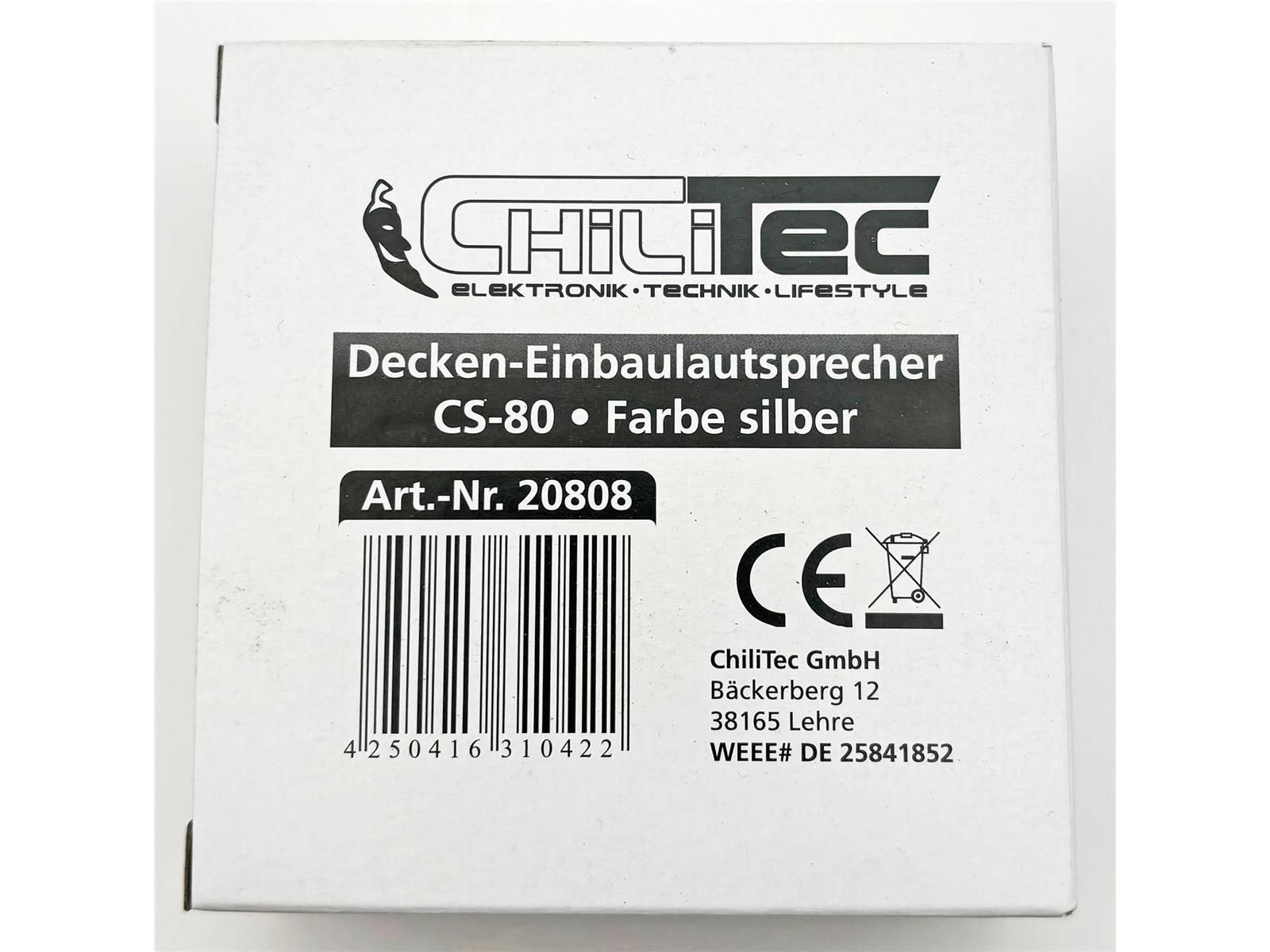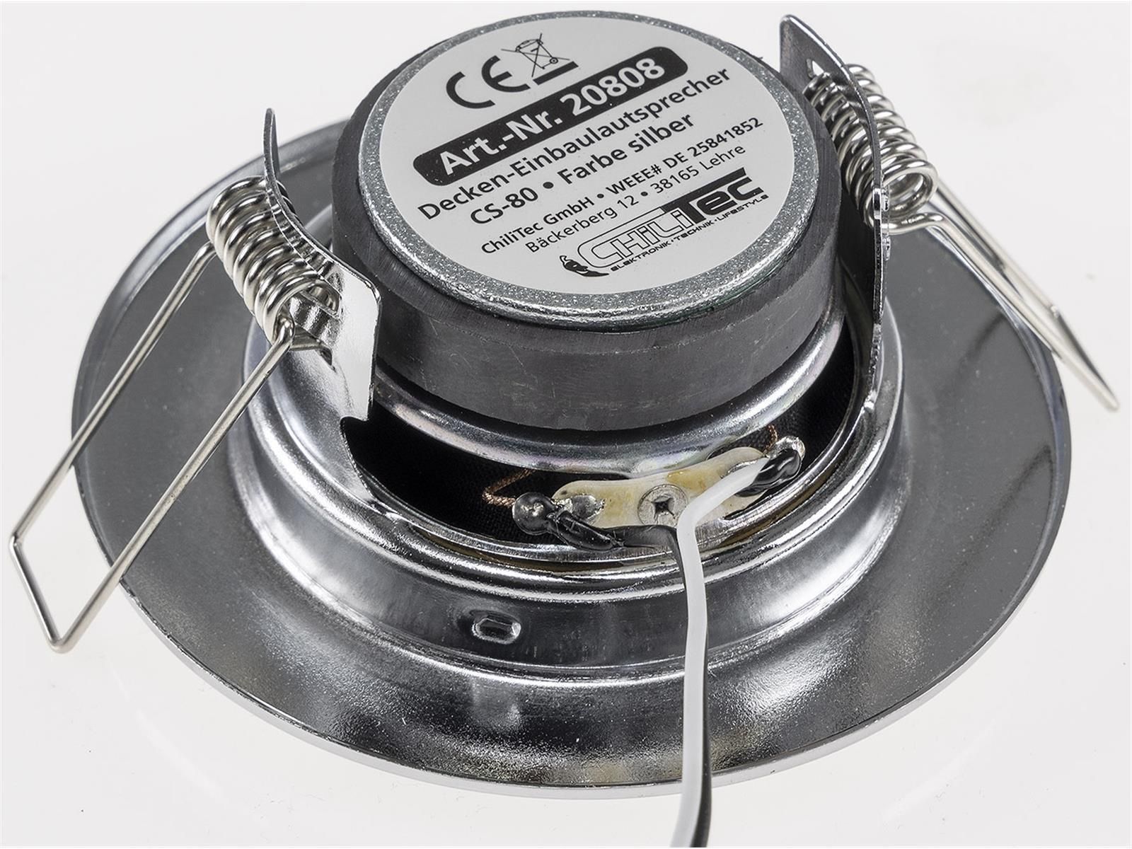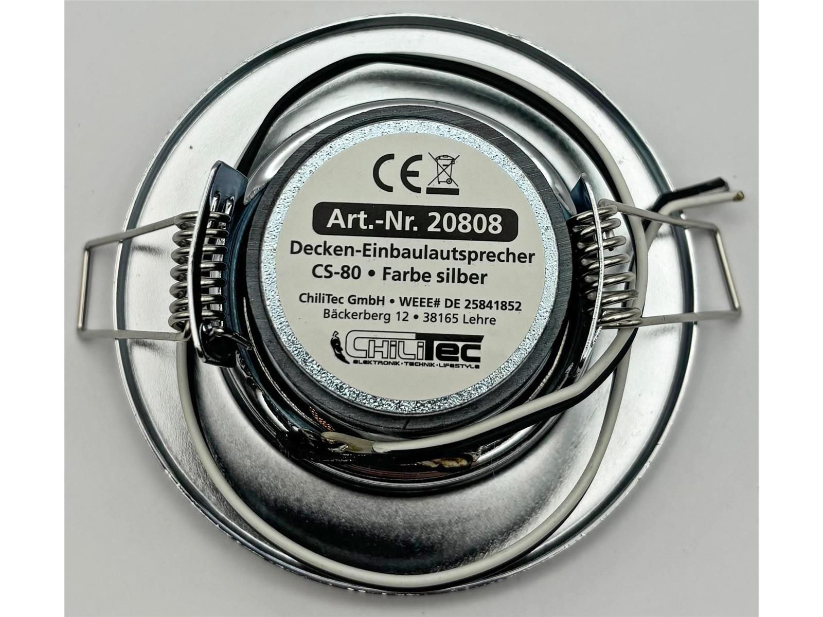 ChiliTec Decken-Einbaulautsprecher mini Halogen-Look, 8cm Ø, 6cm Einbau, chrom