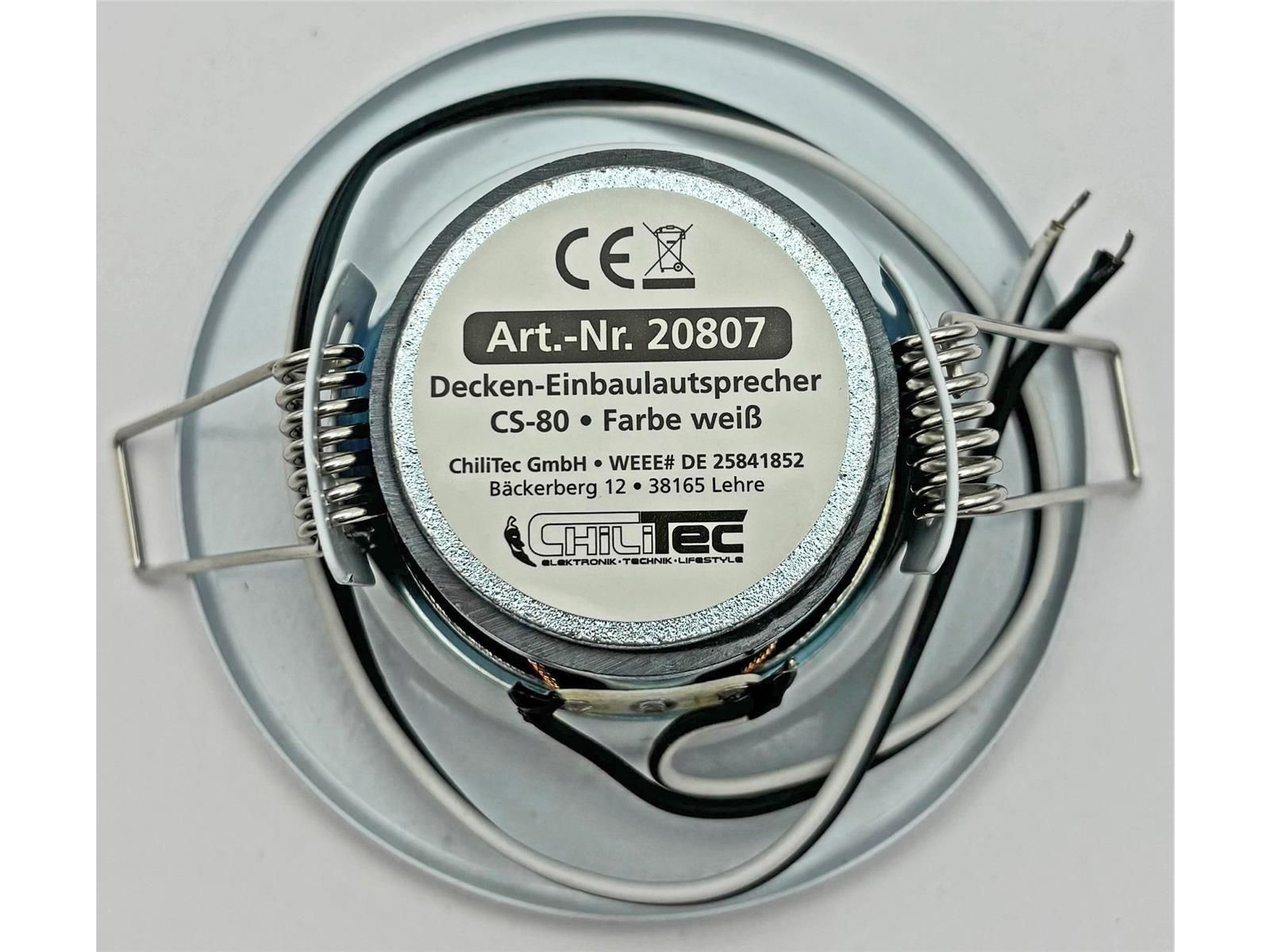ChiliTec Decken-Einbaulautsprecher mini Halogen-Look, 8cm Ø, 6cm Einbau, weiß