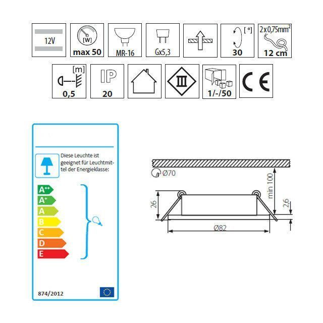Kanlux Deckeneinbaustrahler Einbaurahmen Spot Strahler schwenkbar rund, weiss, GX5.3