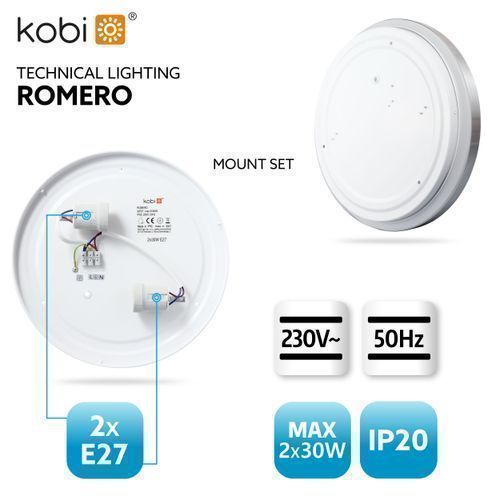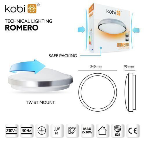 Deckenlampe Flach, Rund Ø34cm, Kompatibel mit 2x E27 230V