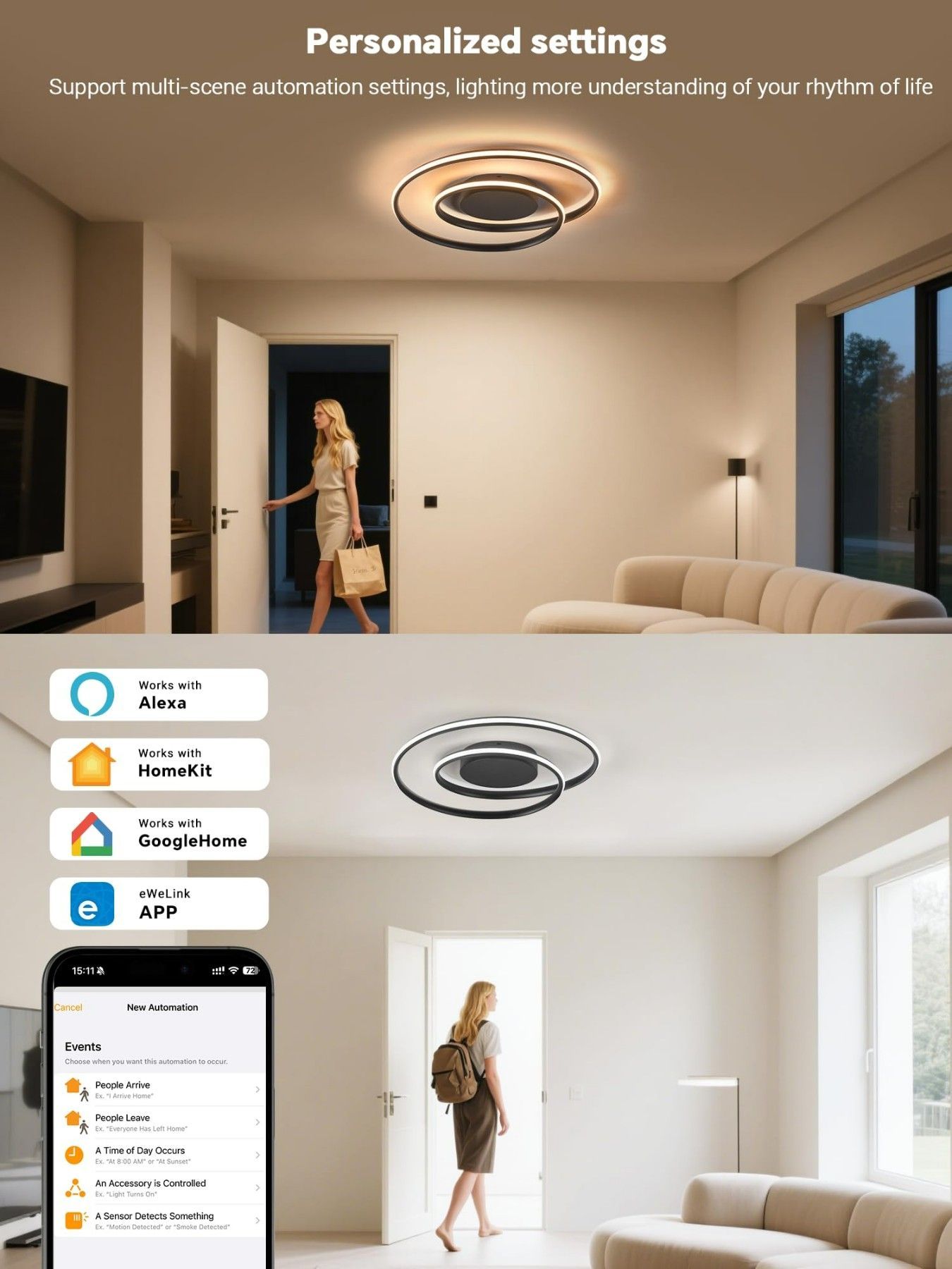 Deckenlampe mit Fernbedienung, Wohnzimmerlampe with Matter Kompatibel Mit HomeKit
