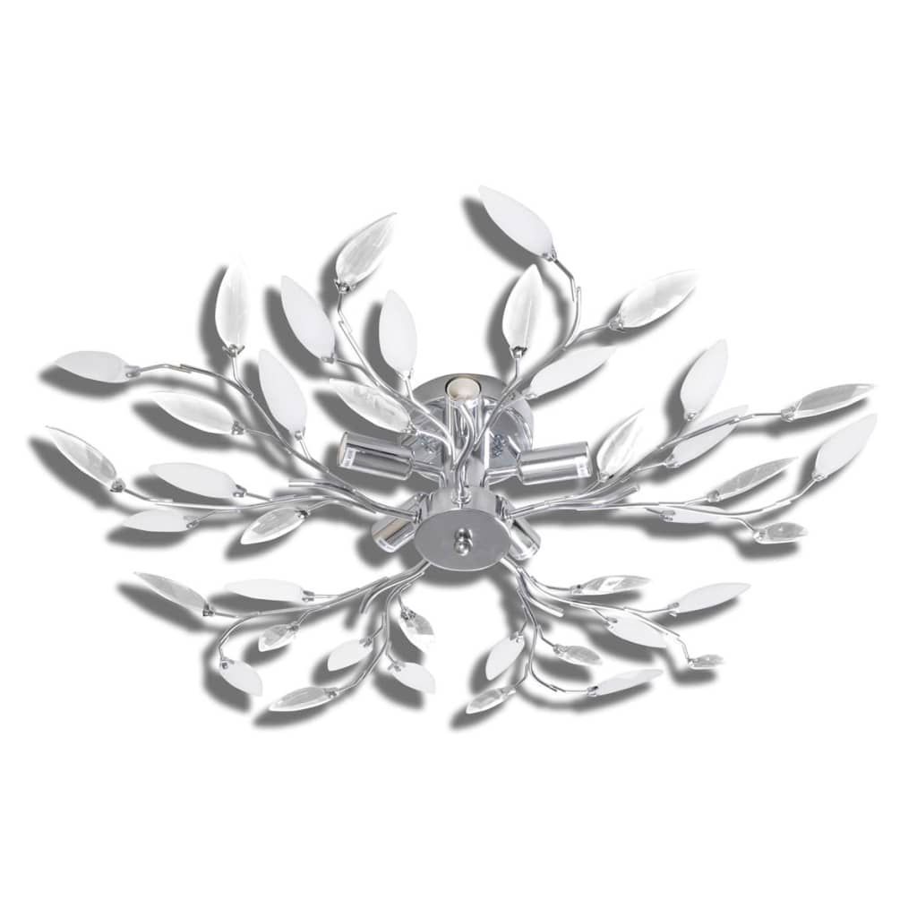 vidaXL Deckenlampe transparente weiße Blätterranken mit Acryl-Blättern 5x E14