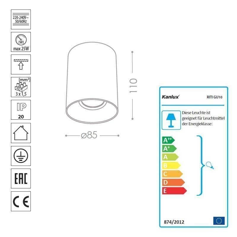 Kanlux Deckenspot Strahler Riti Deckenlampe Aufbau schwarz gold LED Halogen 110mm lang