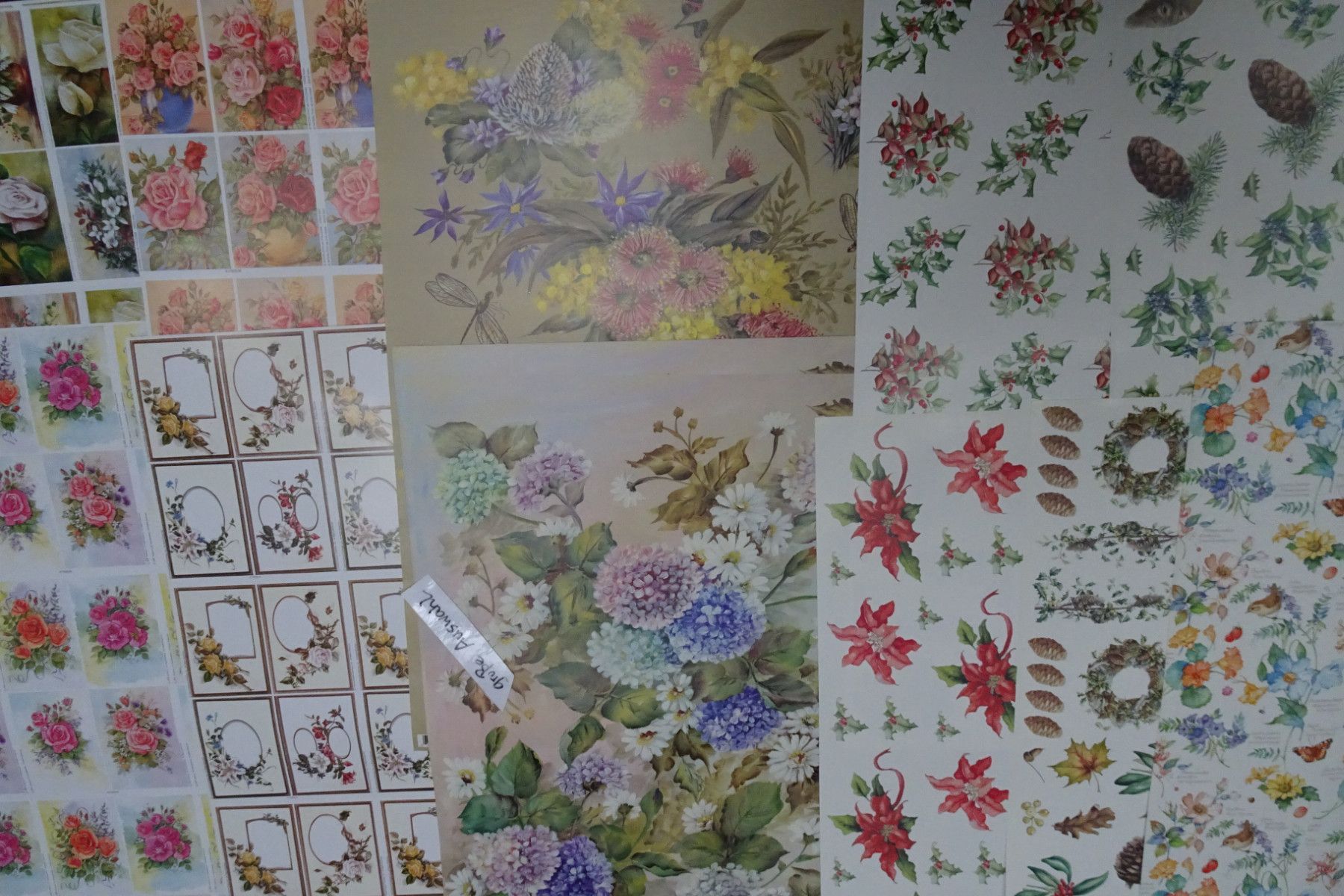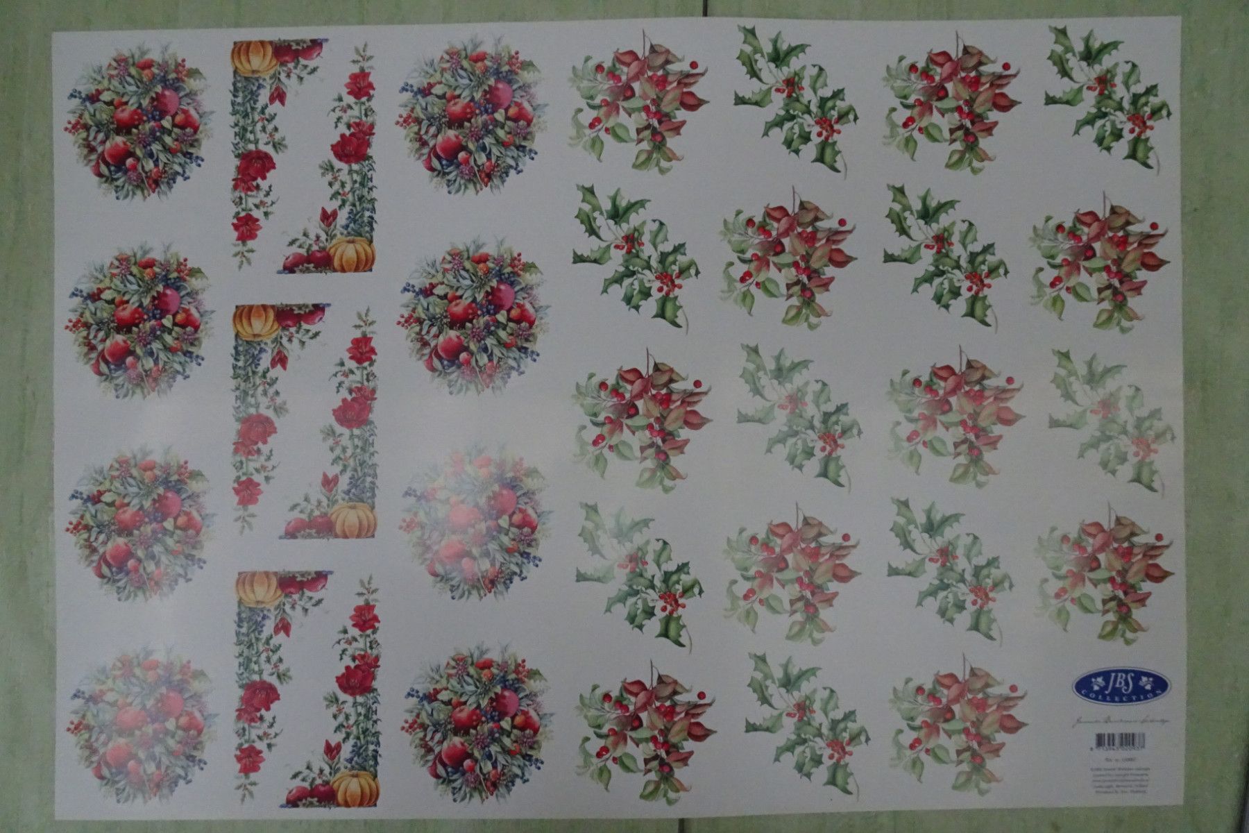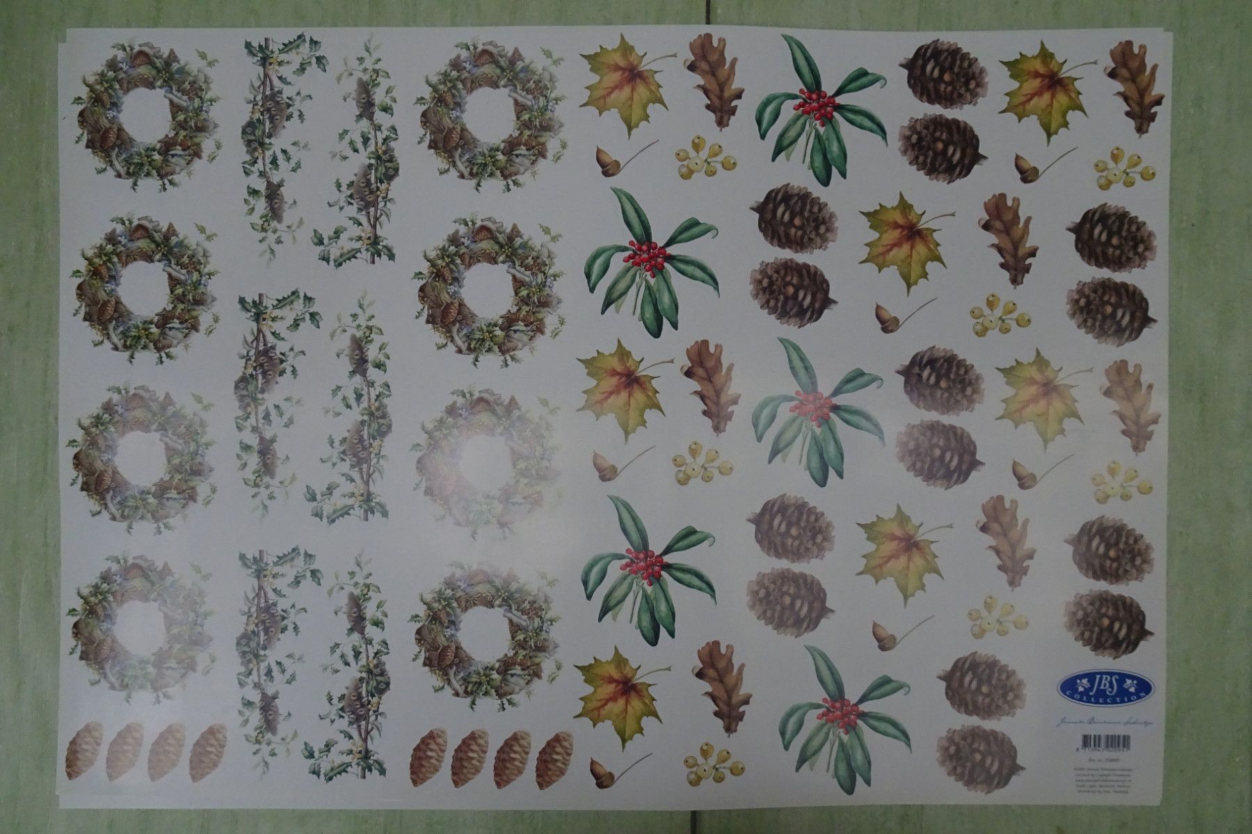 Decoupage Papier Bogen 70 x 50 cm Blumen Blüten Tannenzapfen Blumenkranz....