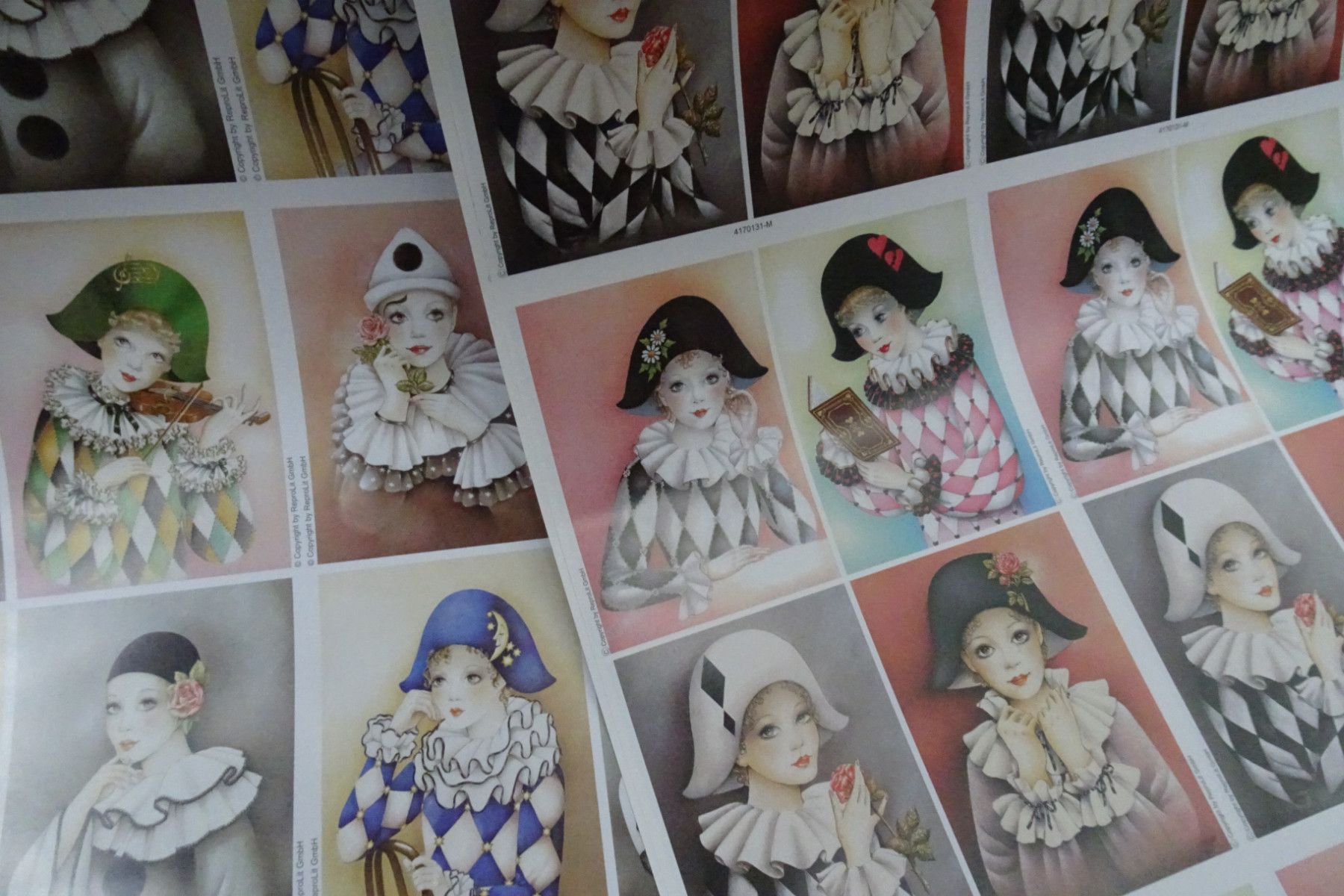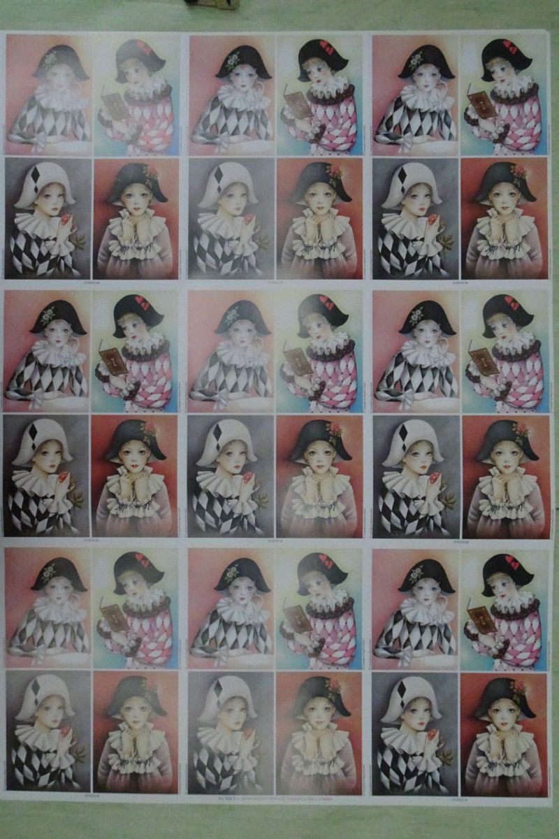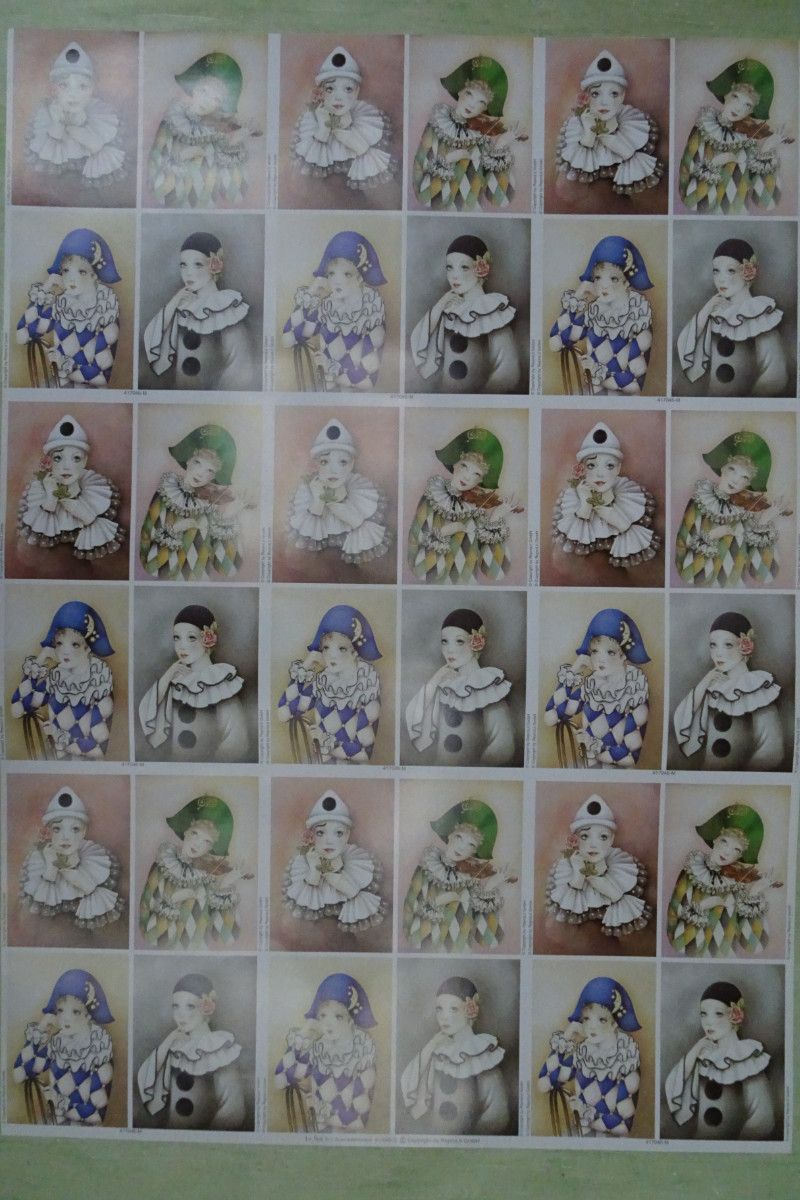 Decoupage Papier Bogen 70 x 50 cm Le Suh Harlekin Pierrot Clown Zirkus Manege